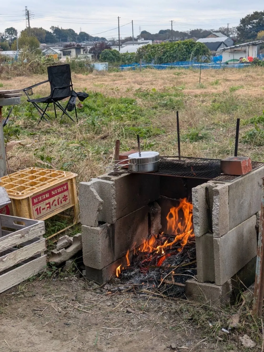 手作りの焚き火専用の場所