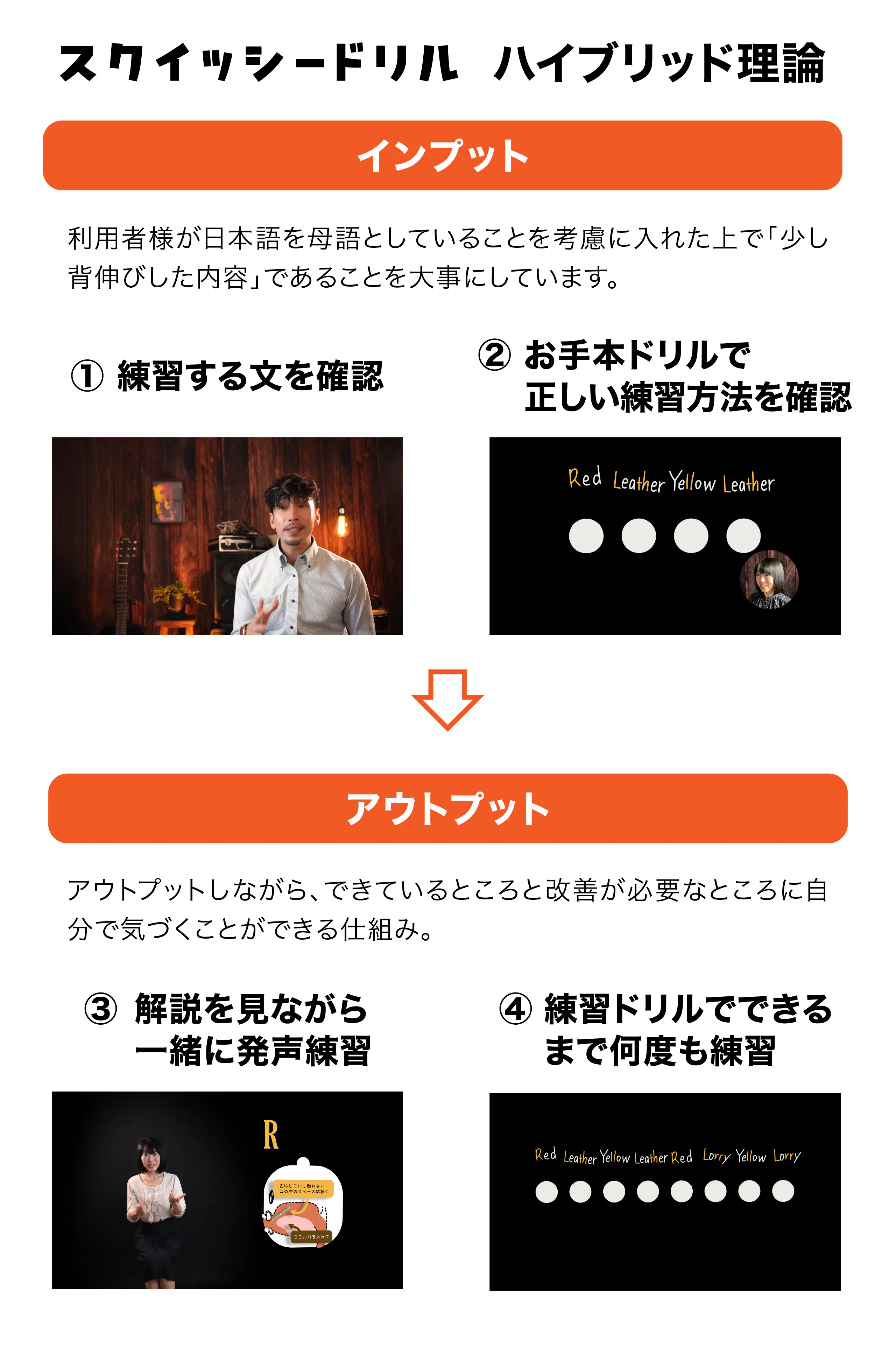 スクイッシードリルが採用しているのは、「インプット仮説」と「アウトプット仮説」をバランスよく取り入れたハイブリッド理論。