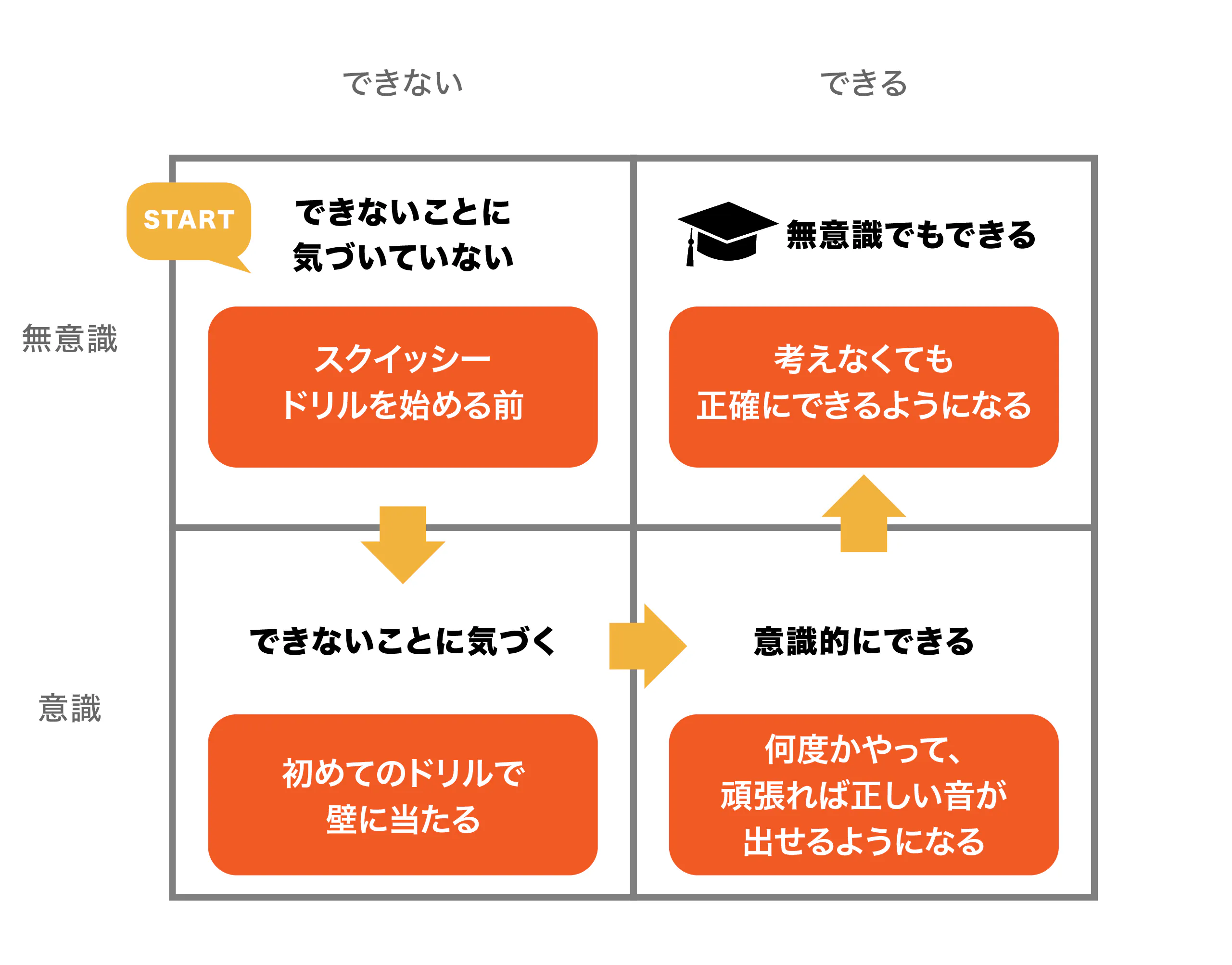 4つのコンピテンシーレベル(能力レベル)にスクイッシードリルを当てはめてみよう