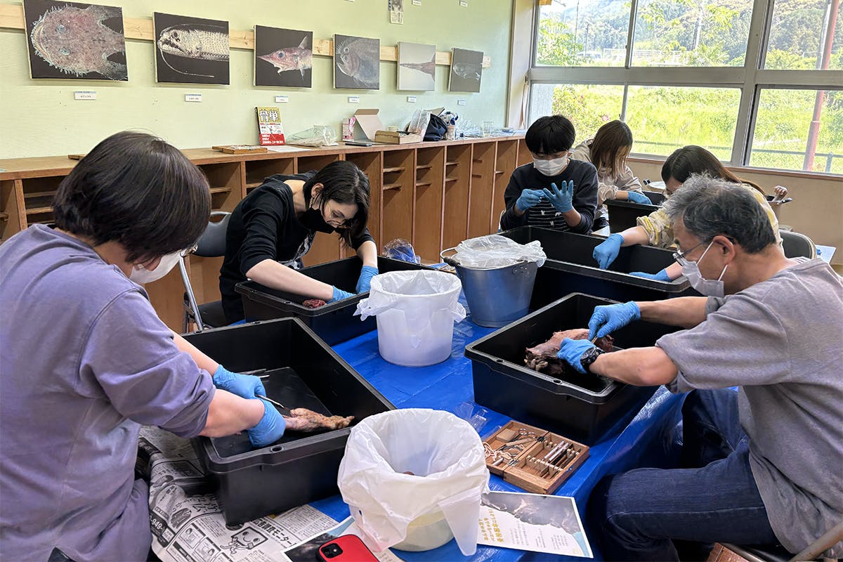 皆さん作業に没頭しながらも「ここに血管が…」「これが膝のお皿か!」「肩甲骨大きい」など、互いに見せ合いながら生き物の体の観察も行っていました。