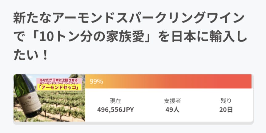 現在49名様から496,556円のご支援をいただいており、第1ゴール達成間近です!