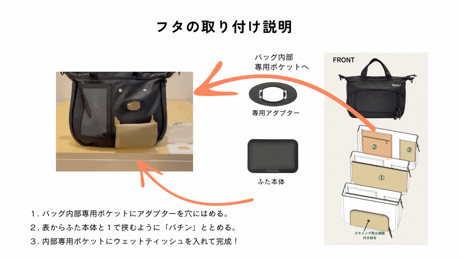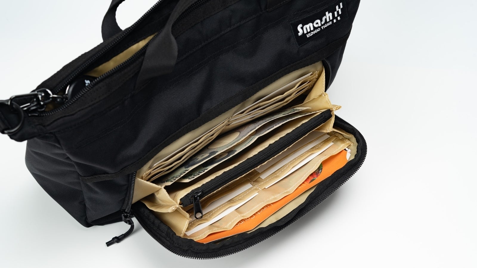 【SmashBag(スマッシュバッグ)】のフロントポケットは、なんとお財布として使える仕様になっているんです。