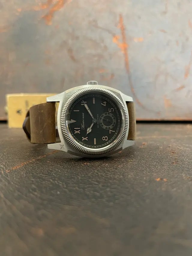 今回の”MAJETEK Big Turtle 腕時計”はM.R.M.W.の軍モノ時計第16弾になります。チェコスロバキア第一共和国は、1918年から93年にかけて存在した国です。現在のチェコ共和国とスロバキア共和国により構成され75年存続しました。海のないその地形から当時は非常に充実した空軍を有していたとされています。その様な歴史的背景に創られた”MAJETEK Big Turtle 腕時計”は時計として、とても素晴らしいバランスのとれたモデルです。