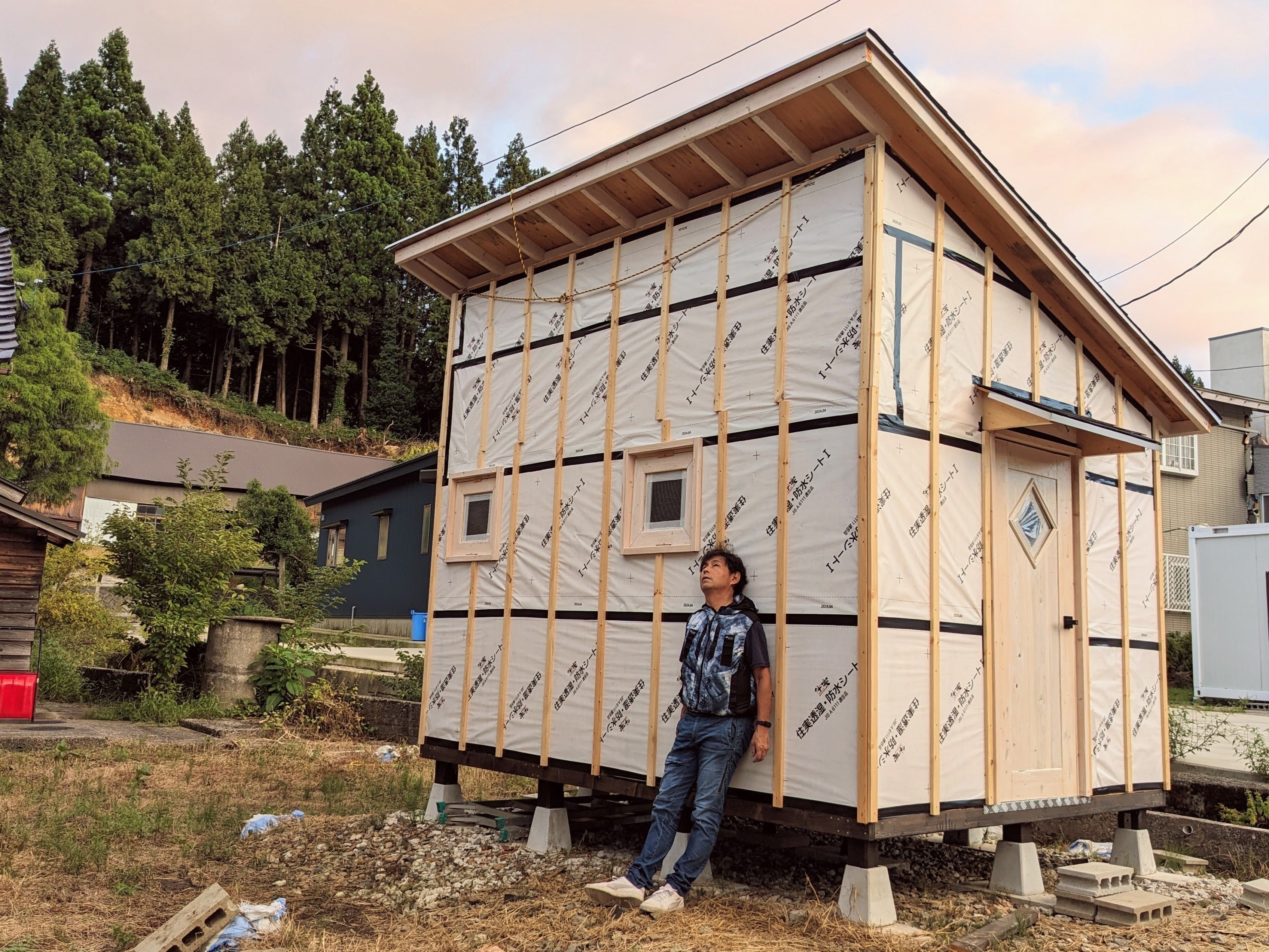 ちょっと疲れた表情をしていますが、DIYで家が作れることはわかりました。次は屋根にソーラーパネルを設置して水と電気のオフグリッド化に取り掛かるつもりです。これらの情報の交換や提供もしてゆきます。