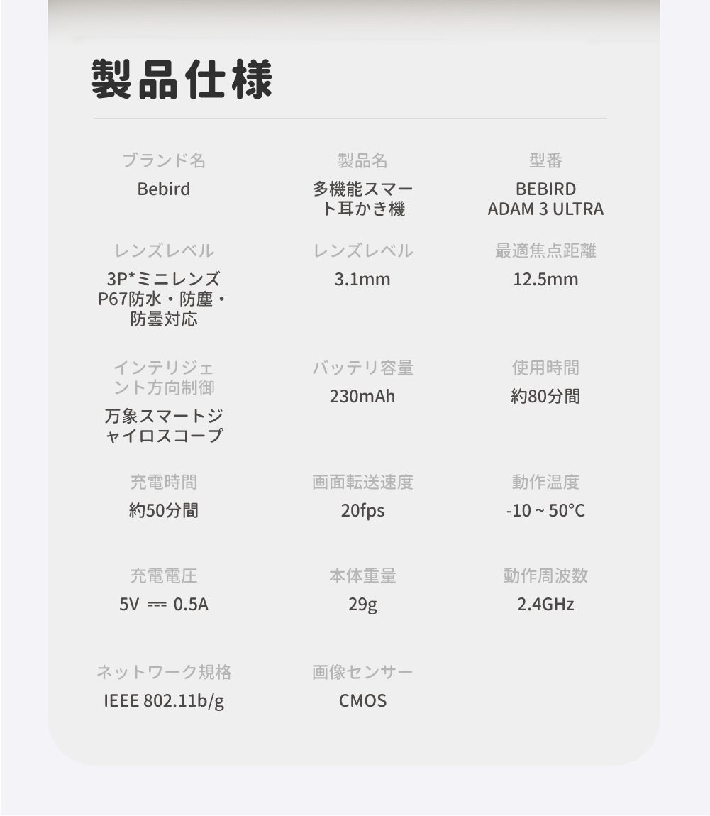 革新的なスマート耳かき「Bebird ADAM 3 ULTRA」で、耳掃除をより安全で快適に。Campfire限定の毛穴ケア専用アクセサリー付きで、ニキビや角栓ケアも可能。アプリでリアルタイムに確認できます!
