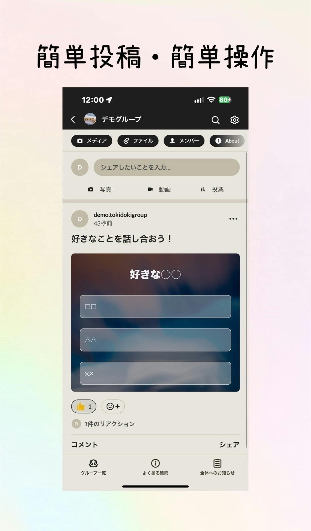TOKIDOKI GROUPは、常に時代の先を行くSNSプラットフォームを提供してきた、革新を追求する提供者です。私たちはこれまで、Webサイトを通じて多くのユーザーに次世代型SNSを体験していただいてきました。私たちのチームは、ユーザーの創造性やコミュニケーションをサポートするために、技術とデザインの両面で優れたスキルを持つプロフェッショナルで構成されています。TOKIDOKI GROUPは、常に新しい挑戦を恐れず、次なるステージへと進み皆様のお役にたてることを使命としています。