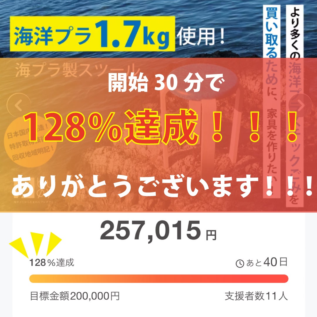 本日(2024年12月16日)の朝10:00に開始したbuoyスツールのクラウドファンディング10:30時点で128%達成しました!