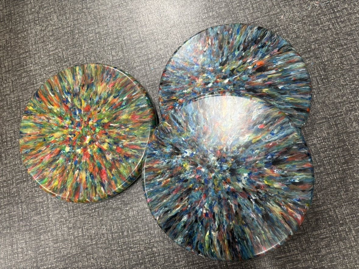 端材から生まれる色なので、成形するまで私たちもどんな色になるのかわからずいつもワクワクしています。
