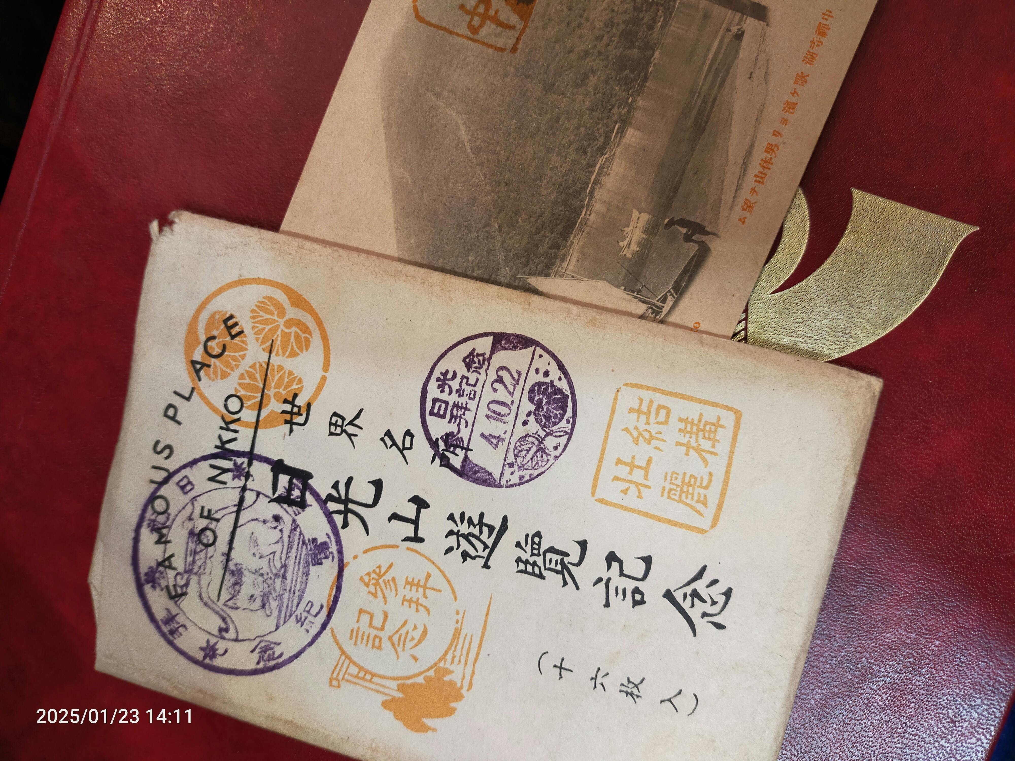 日光コレクションより昭和4年の「世界名所日光山遊覧記念」日光参拝遊覧記念印眠り猫、昭和4年10月22日参拝した事が記念印からもわかります。中の絵葉書は6枚しか残っておらず、眠り猫も使われて無く、人気の絵柄であった事も分かる、遊覧舟の船頭さんのスタイルが明治大正のまま成り。では、本編「猫の切手の本」「ねこの郵便局の本」をお楽しみに。書店では買えませんクラウドファンディングをご利用ください。 #猫の日