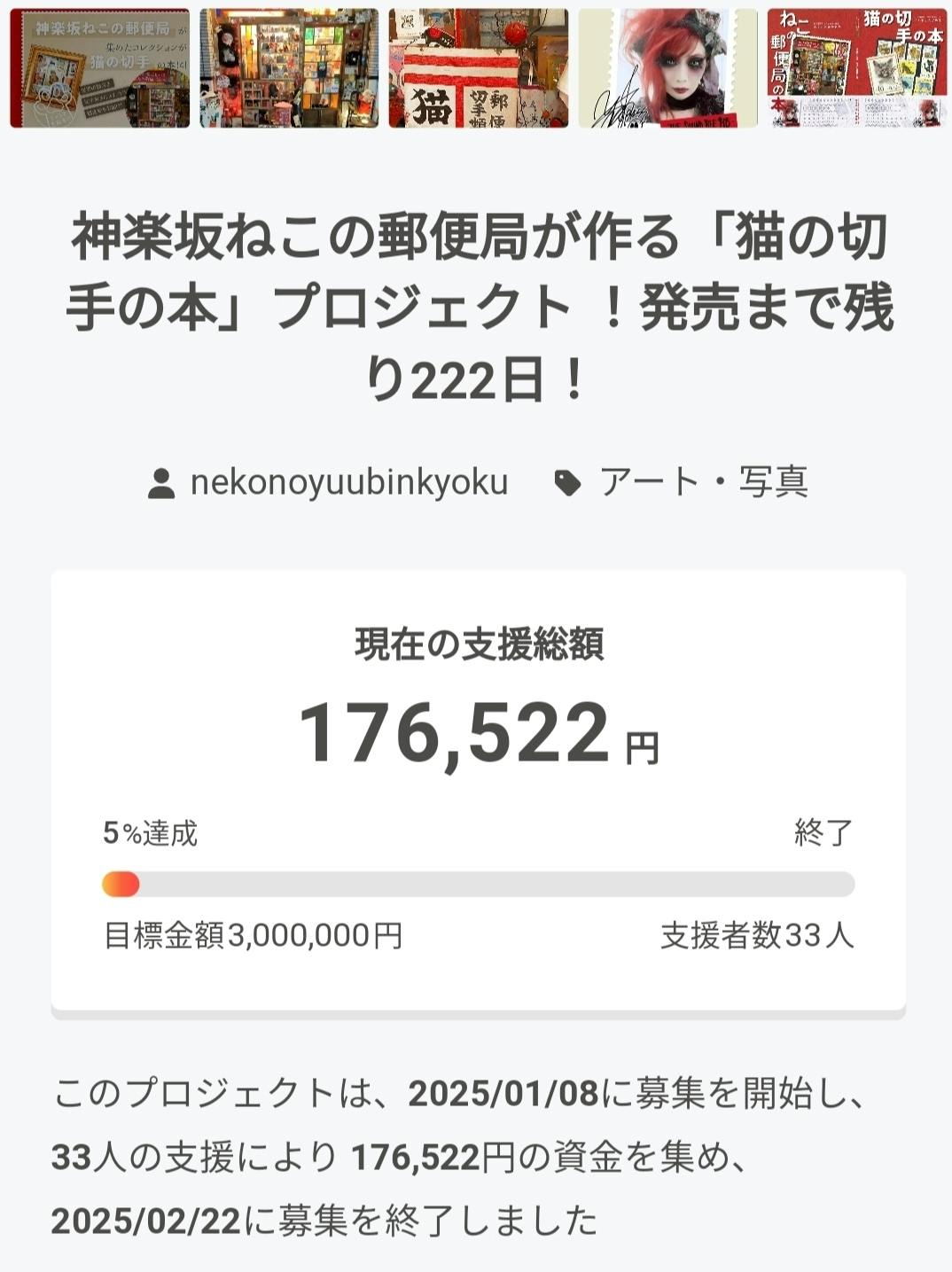 17万6,522円の支援金が集まりました、ありがとうございます。