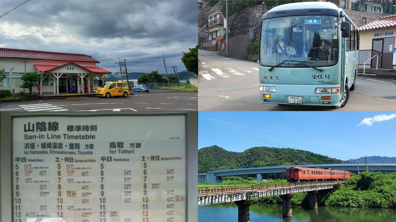豊かな自然が魅力的な一方、人口1万人程度の過疎化が進む不便な田舎町という側面は拭いきれません。町の玄関口である岩美駅の到着列車は1時間に1本あるかないか。駅前ロータリーからはバス(民間と町営)とタクシーが発着しており、昼間の観光需要には何とか応えているものの、タクシーの営業時間は18時頃迄で、頼みの町営バスも19時台が最終便となり、夜間の公共交通手段がありません。