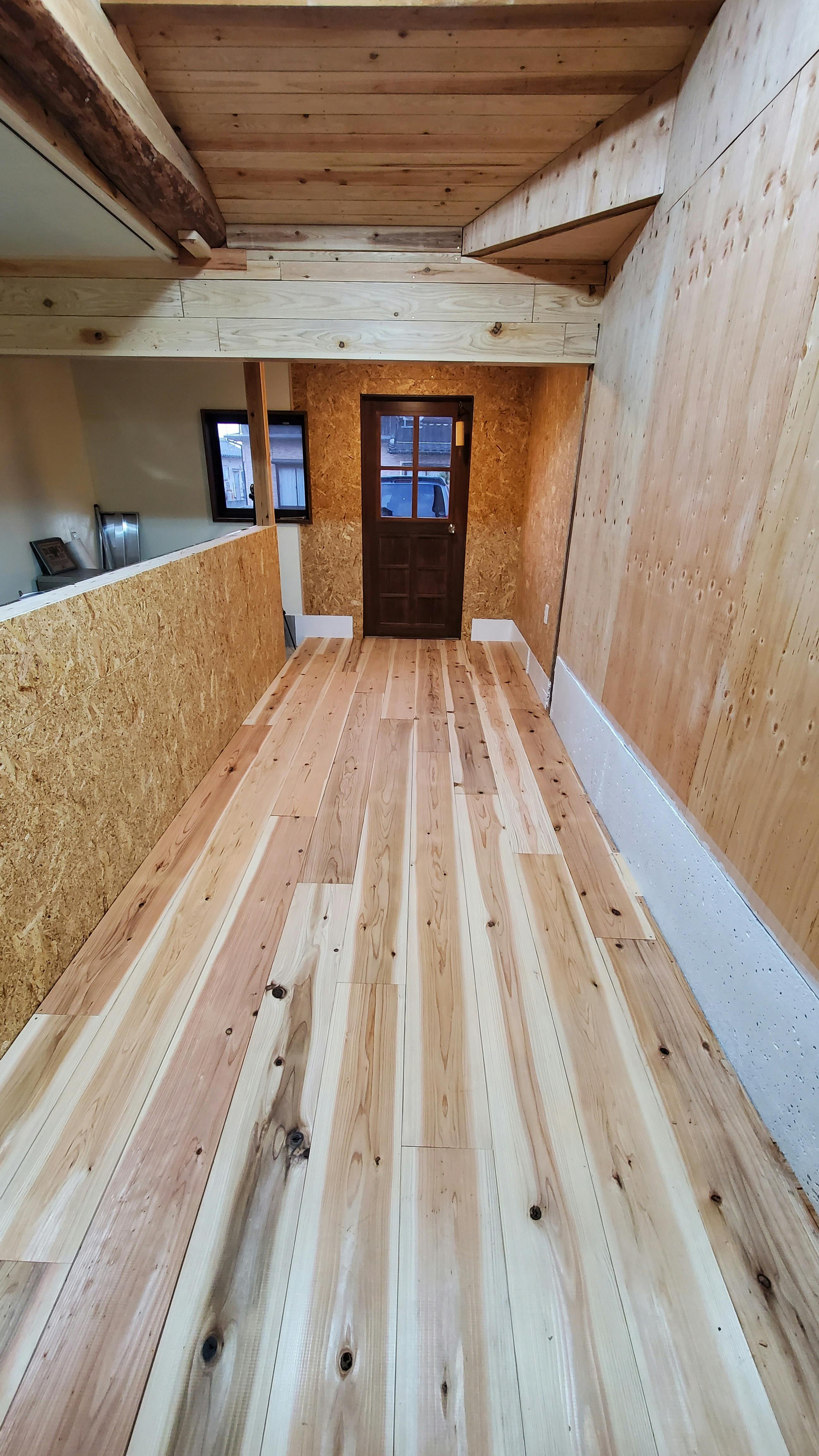 変則的高配がある床に水平を取る下地造りが何気に地味な作業で結構大変でした。