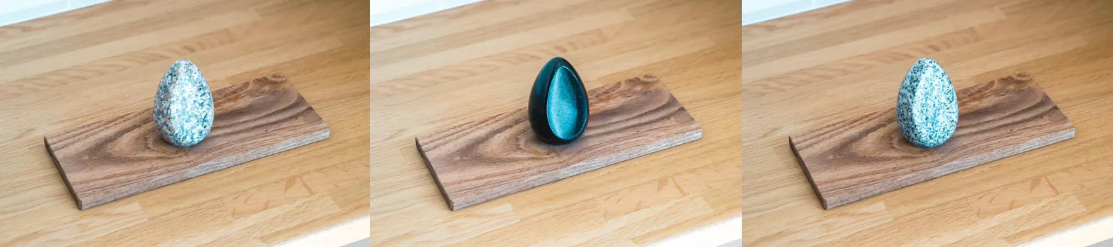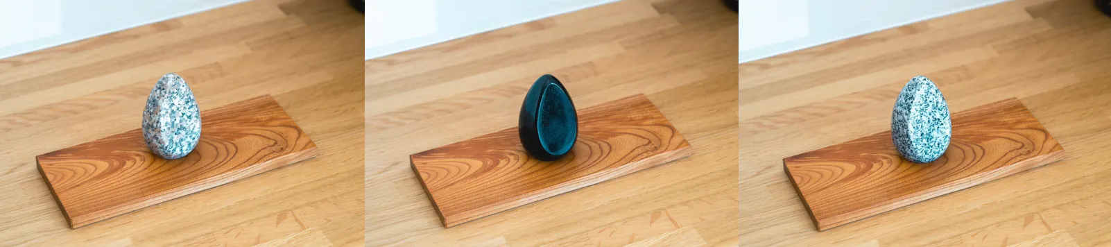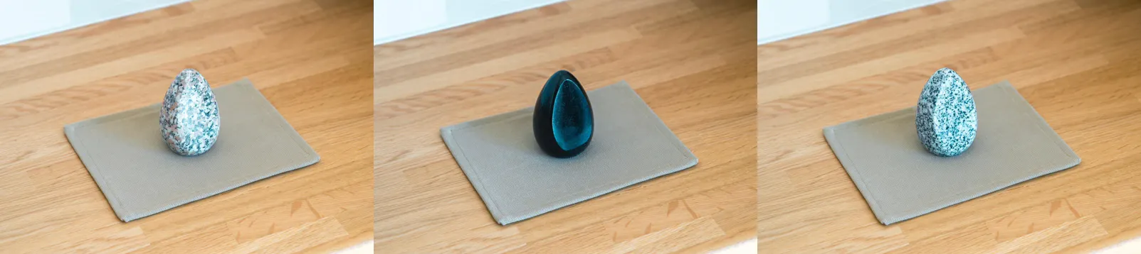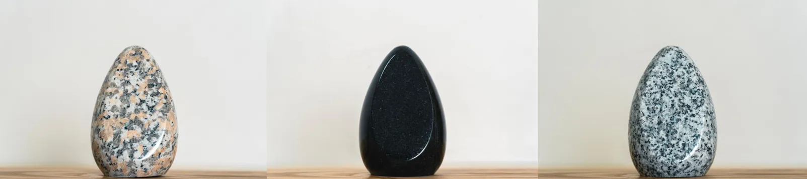 てのひらおはか本体 左:万成石 中:黒御影石 右:小目石