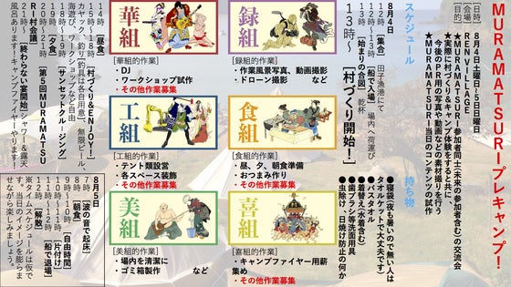 「8/4-5MURAMATSURIプレキャンプ@西伊豆REN VILLAGE開催決定!」参加者募集のお知らせ