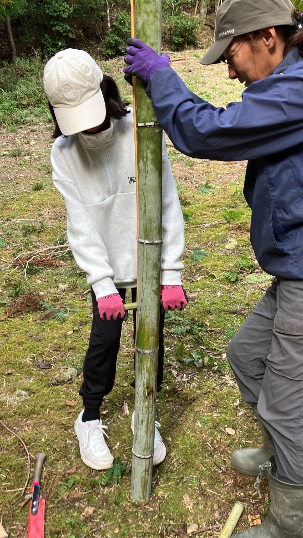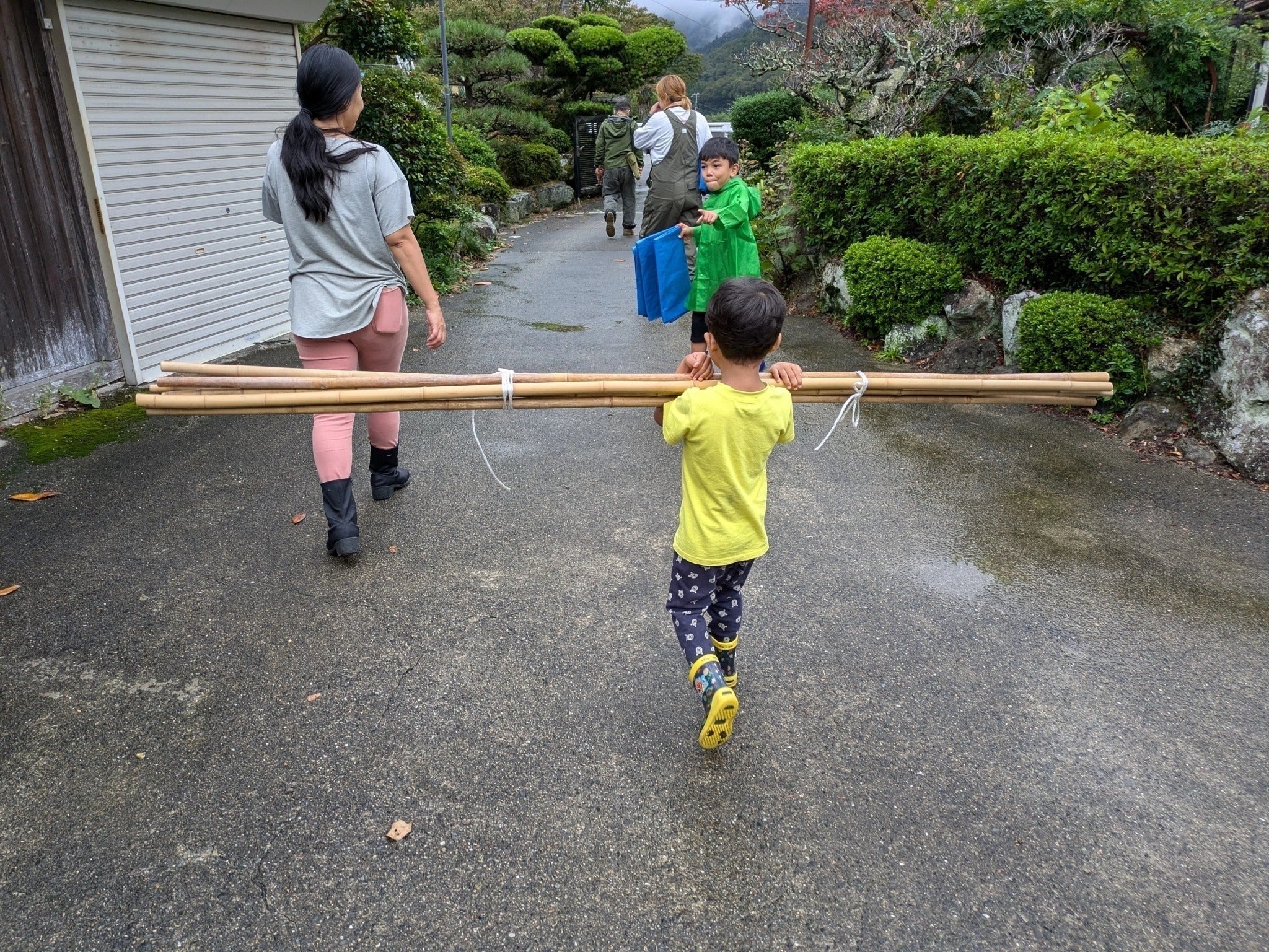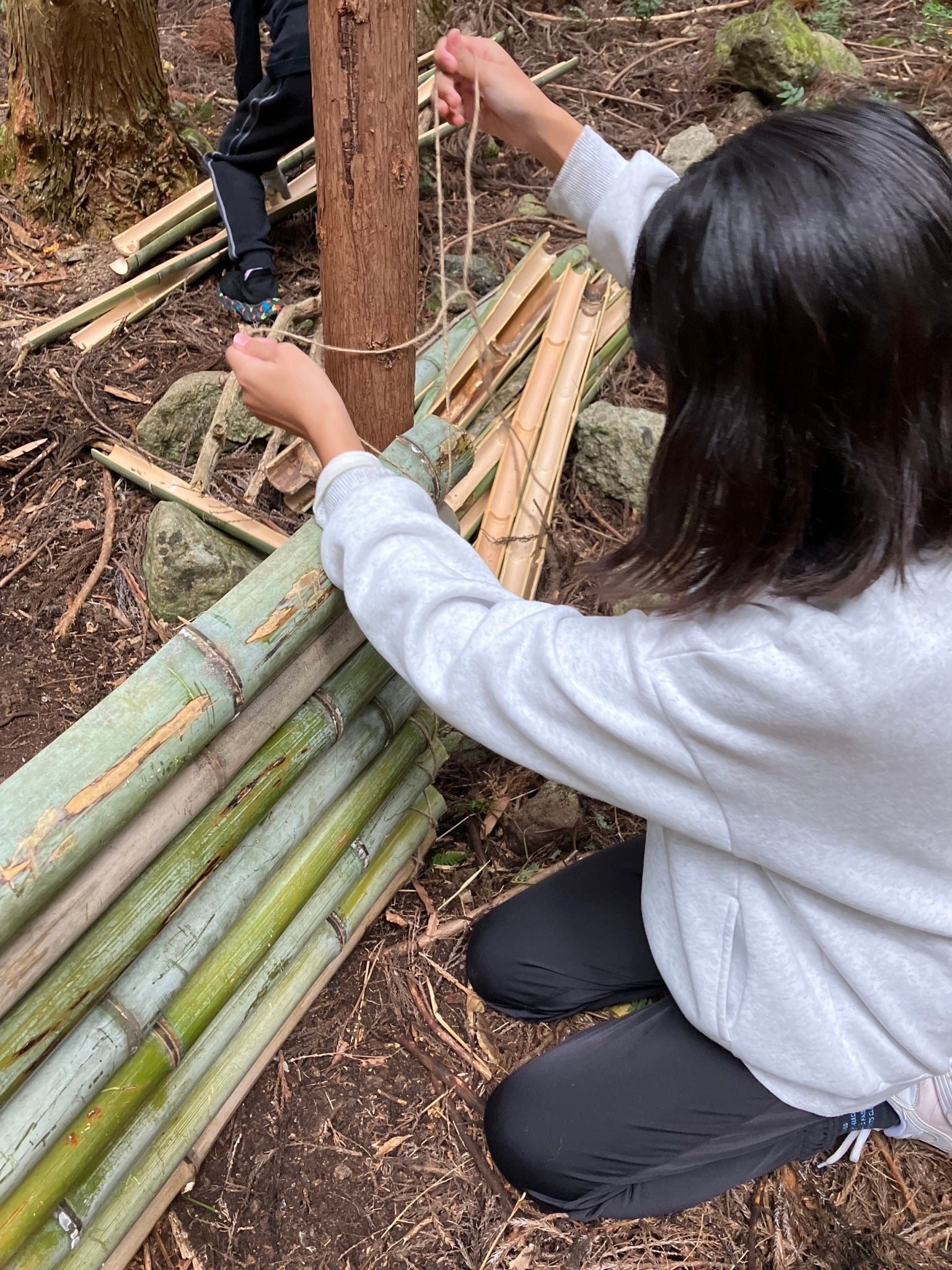 例えば、ある日の活動では、最初は気が進まず車の中でゲームをしていた子どもが、山に入ると表情が一変。落ち葉ステーションづくりでは、竹を切ったり割ったり、柵を作ったりと、最後まで集中して活動を楽しむ姿が見られました。