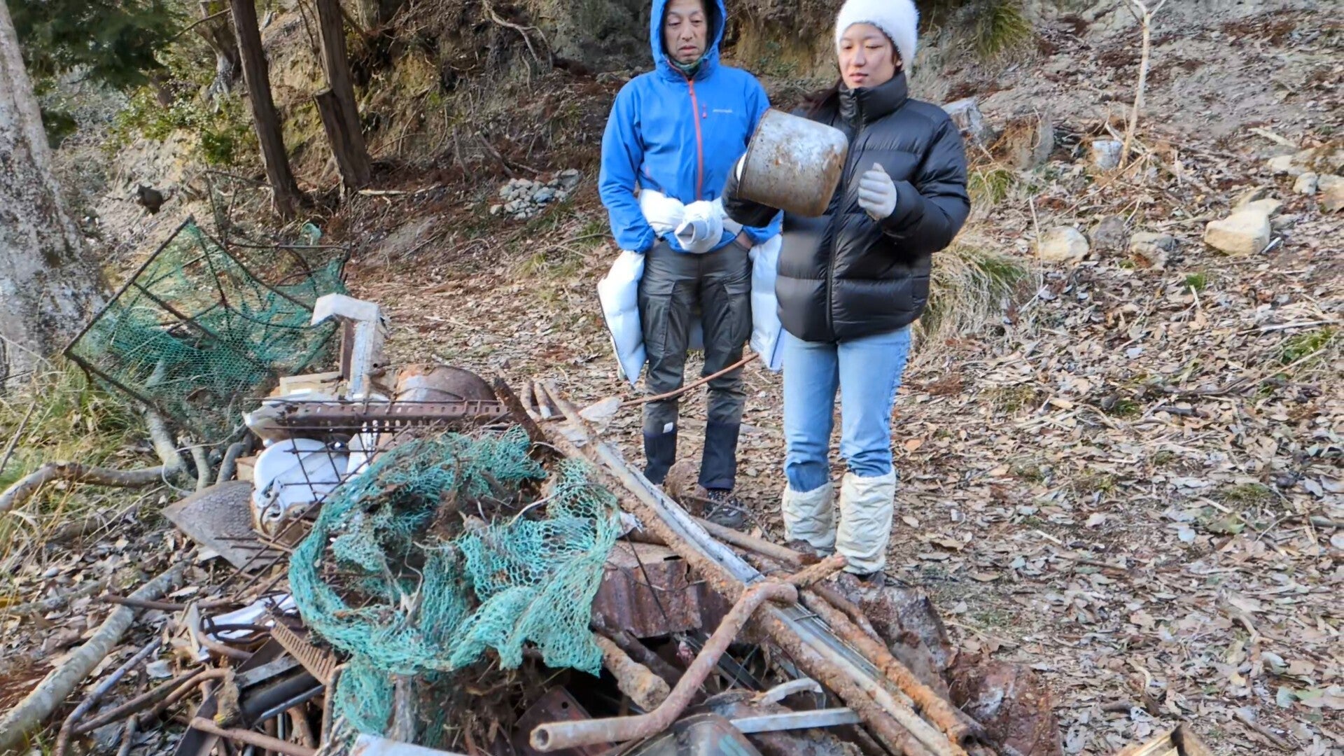 一見すると美しい森も、よく見ると人間が残していった廃棄物が目立ちます。