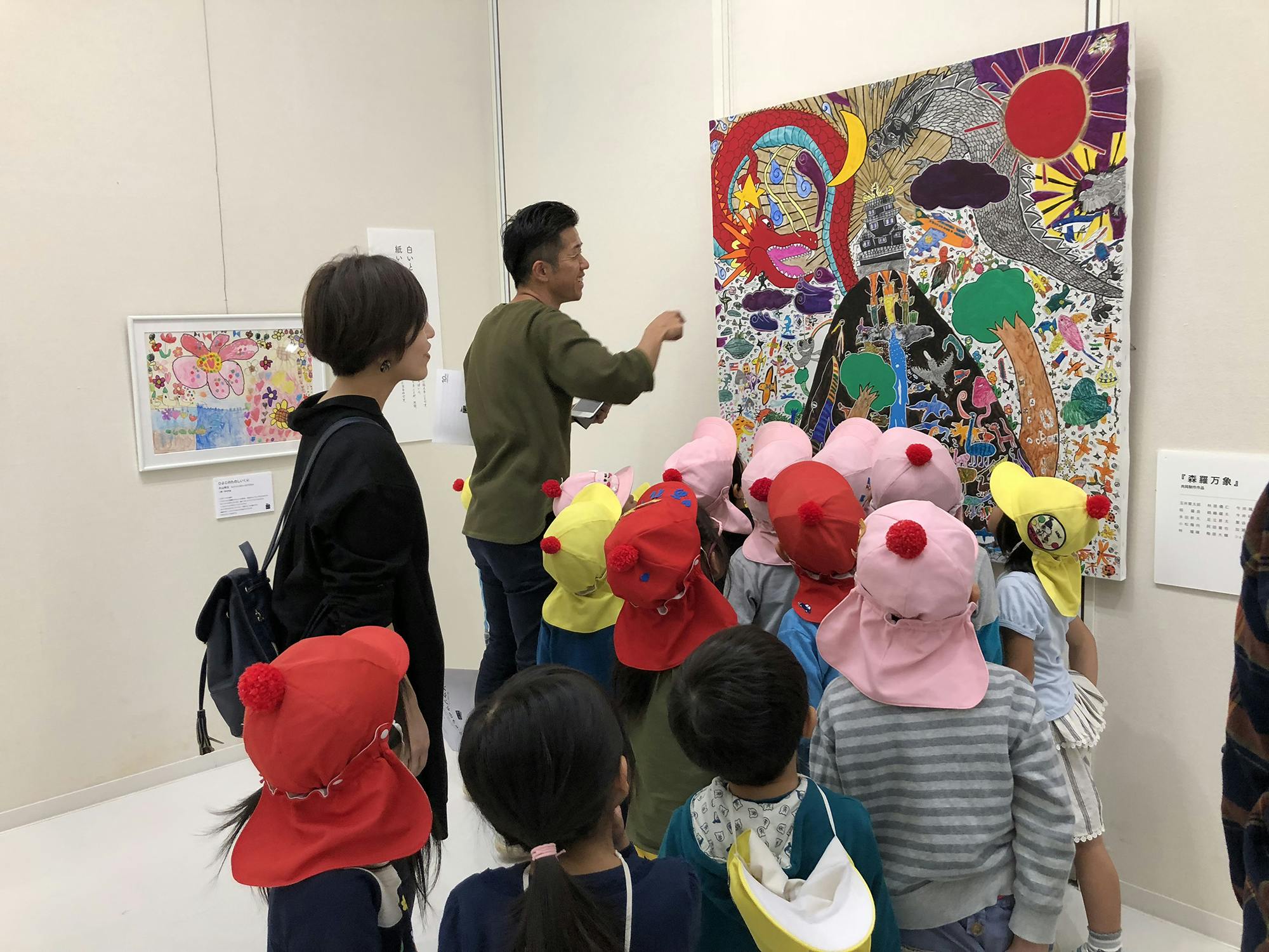 子どもたちが数か月~半年、あるいは一年をかけて制作してきた約100点以上が一堂に並び、その圧倒的パワーに魅了され、毎年楽しみにしていてくださる方も増えつづけています。そして、回を重ねるごとに幼稚園、保育園の団体鑑賞もふえ、「たくさんの子どもたちが美術館に来る作品展」として、地元では定着してきました。