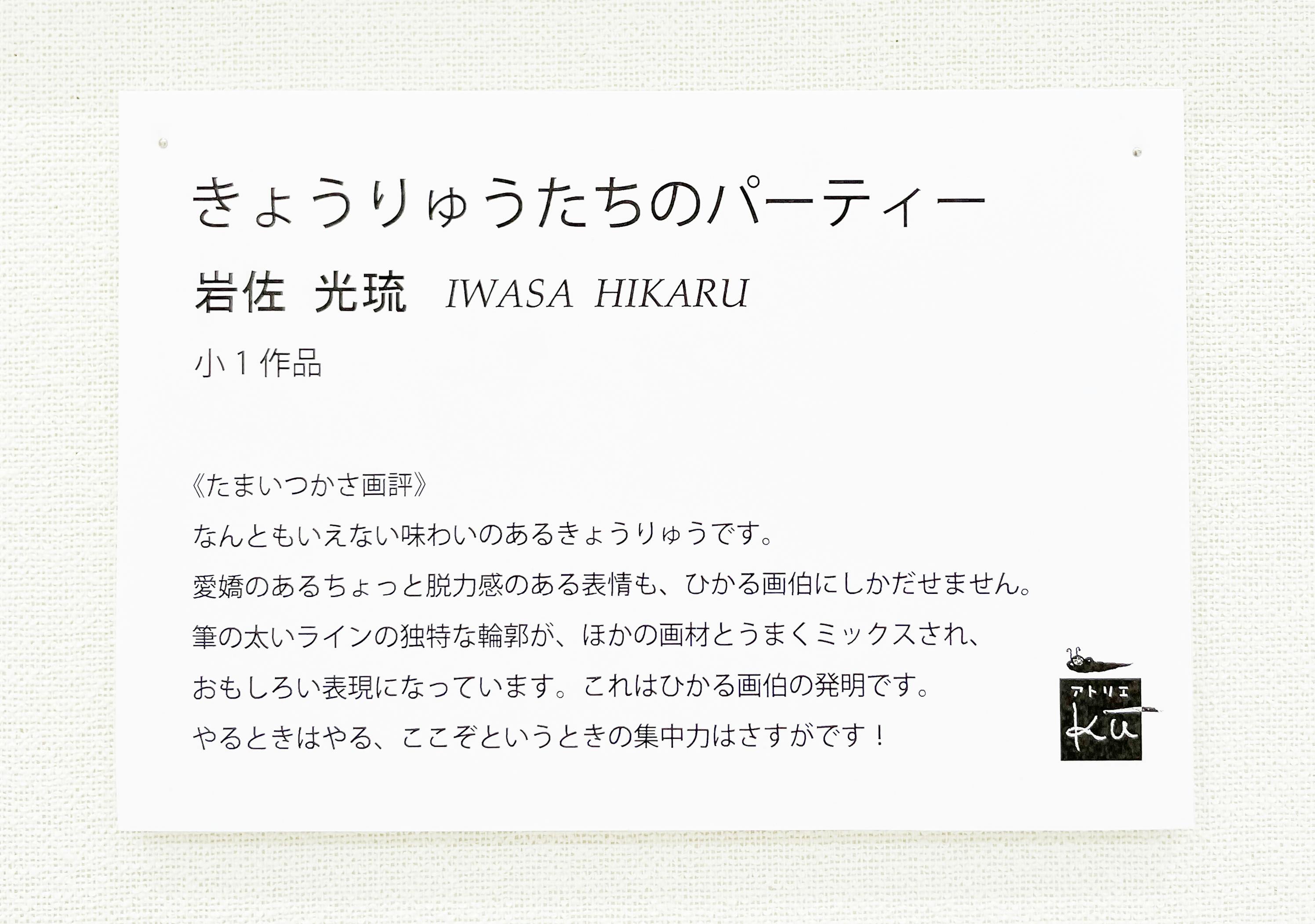 この特別展は、いま通っている教室生約100人の作品に加え、第1回~15回までのセレクト展、さらに、たまいつかさ先生の作品と合わせ、200点以上が一堂に並ぶ、これまでで最大規模の作品展になります。