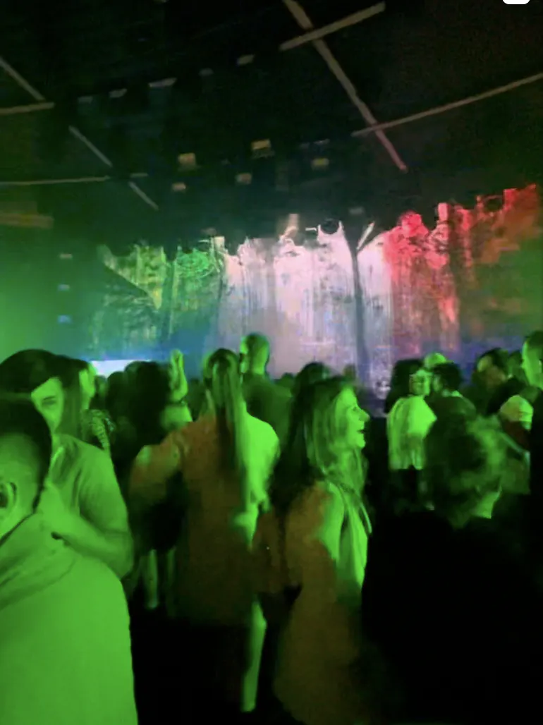 爆音で音楽がかかっていて、照明ビカビカの中で