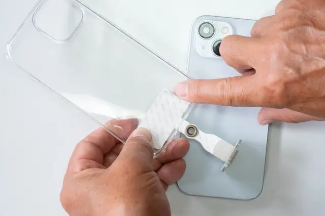 0.6mmの極薄シートで製作。充電時に差し込み口に干渉する心配はありません。