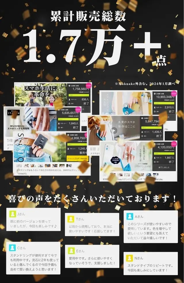 2020年に初代SYANTOをMakuakeで発表。『鍼灸師が作る健康スマホリング』として注目され始め、し、国内で高い評価を獲得しました。