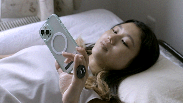 底面支持で乗せて持つことで、握る際の緊張から解放され、スマホがまるで別物のように軽く感じられます。(※94%の人が軽く感じると回答)