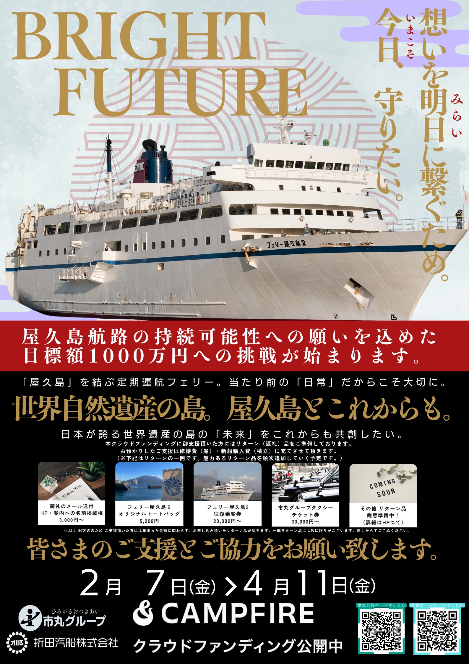 「フェリー屋久島2」の運航再開は、屋久島だけでなく、全国の離島に共通する課題を考えるきっかけにもなるとも考えています。私たちは、皆様とともに未来の航路を支える一歩を踏み出したいと考えています。
