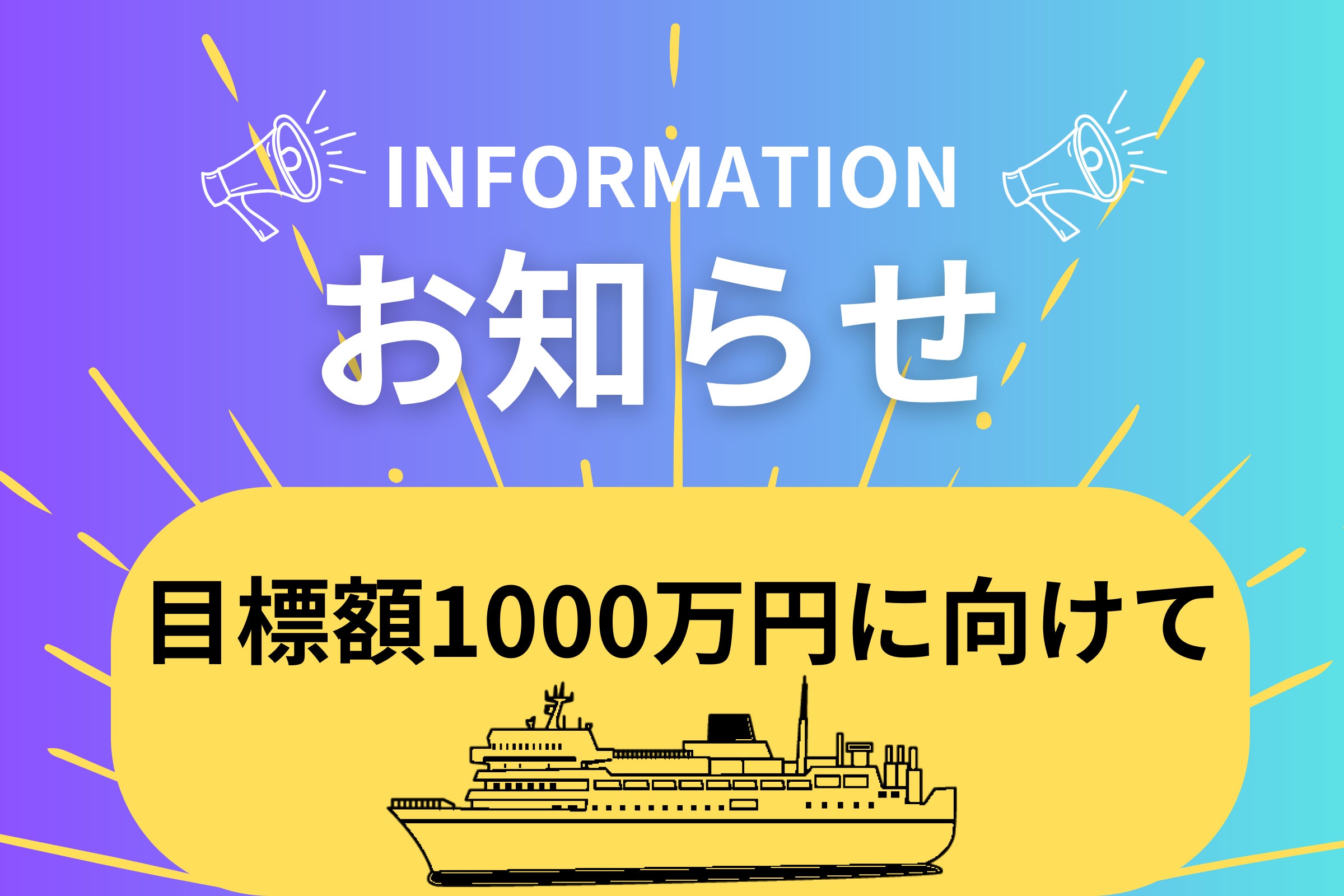 そのため、1st GOALの250万円を超え、ネクストゴールである1000万円を目指すことが重要 となります。できるだけ多くの方に関わっていただき、離島航路の未来を共に考えていきたいと思います。
