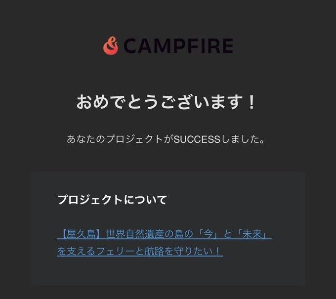 プロジェクト開始からわずか11日での達成となり、多くの方々の「フェリー屋久島2」や「離島航路」への想いを強く感じています。
