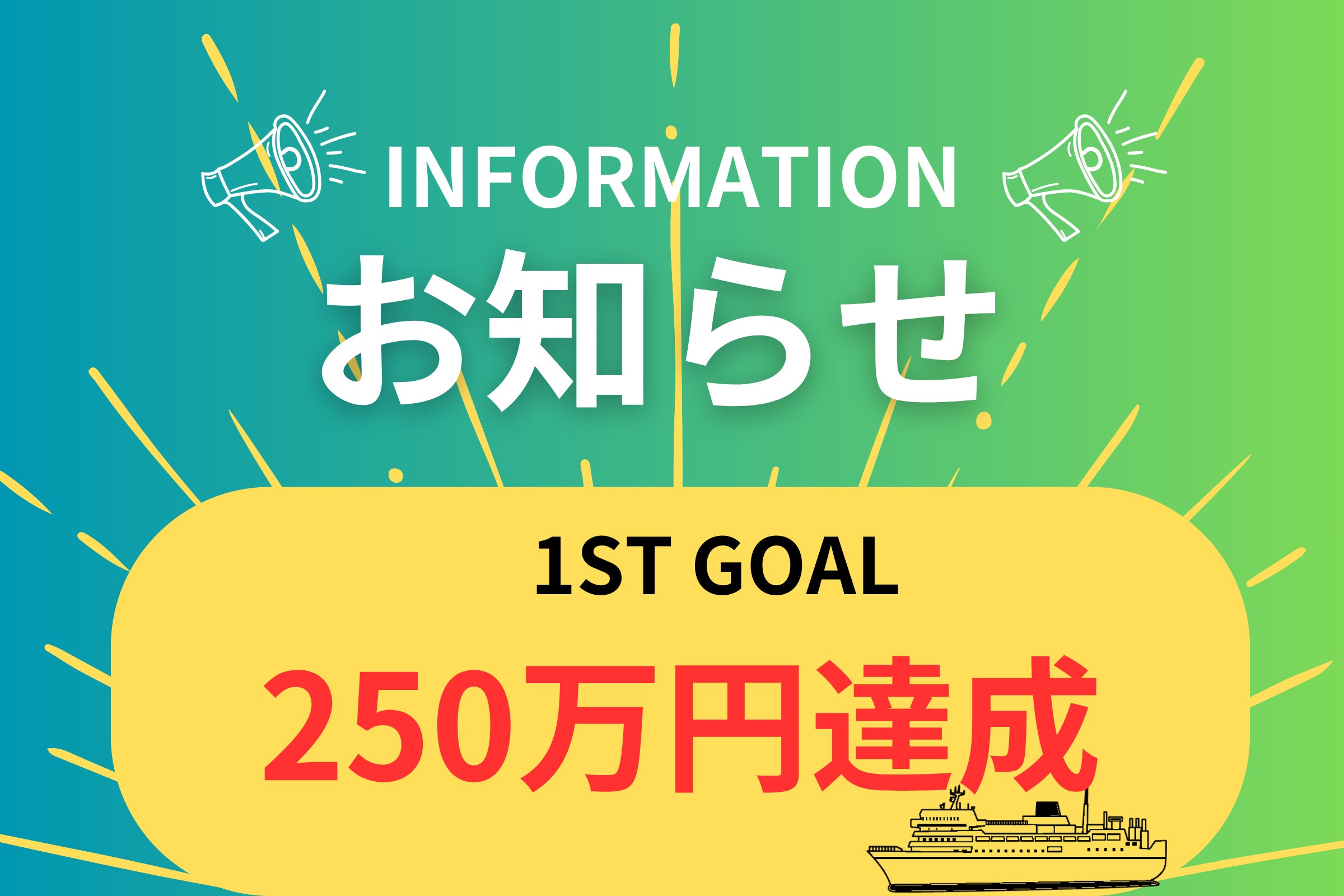 支援総額は250万円を突破し、1stゴールを達成することができました!