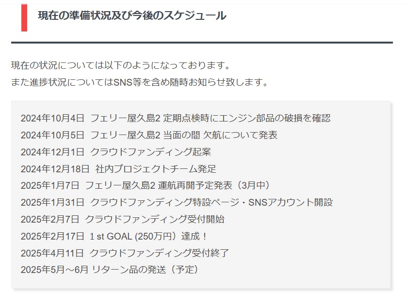 本プロジェクトにおいて 資金調達や目標金額への到達よりも「離島航路の重要性」や「屋久島航路(≒フェリー屋久島2)の持続可能性」といった部分が重要な部分であると考えて参りました。