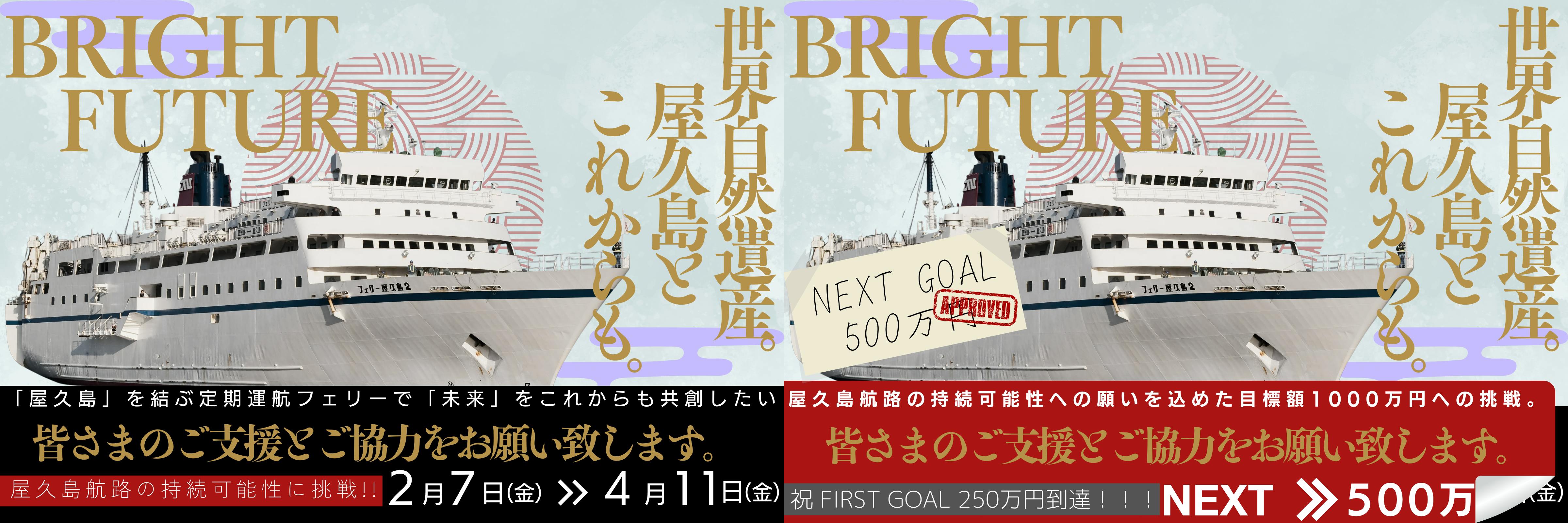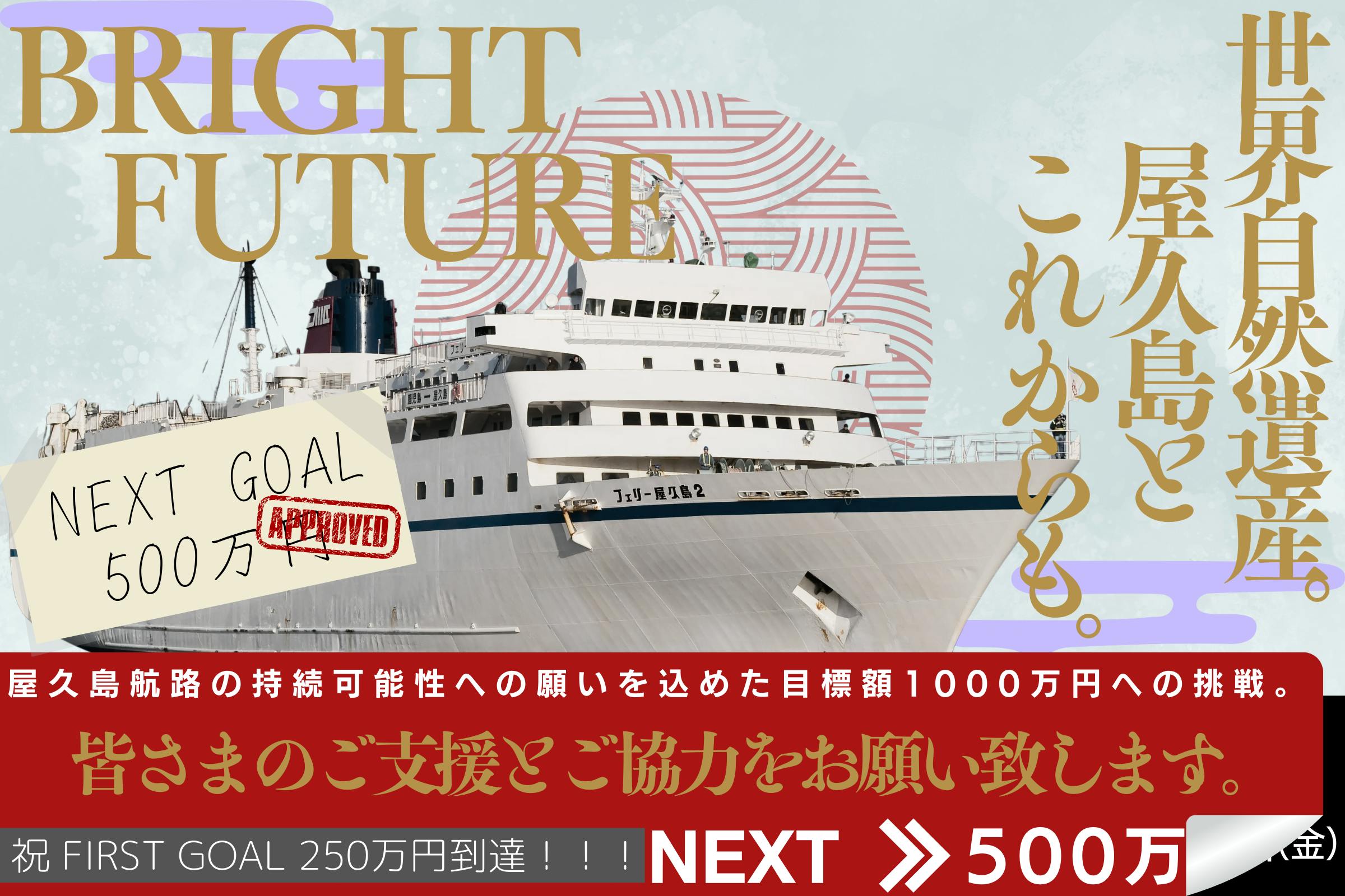 ポスターやチラシに記載している「目標額1000万への挑戦!」という部分との差異については こちら で詳しく記載させて頂いておりますが、「離島航路の現状や課題」 という部分をより色んな方に知って頂くためにもこのCAMPFIRE(クラウドファンディング)で私たちは挑戦を続けていきます。