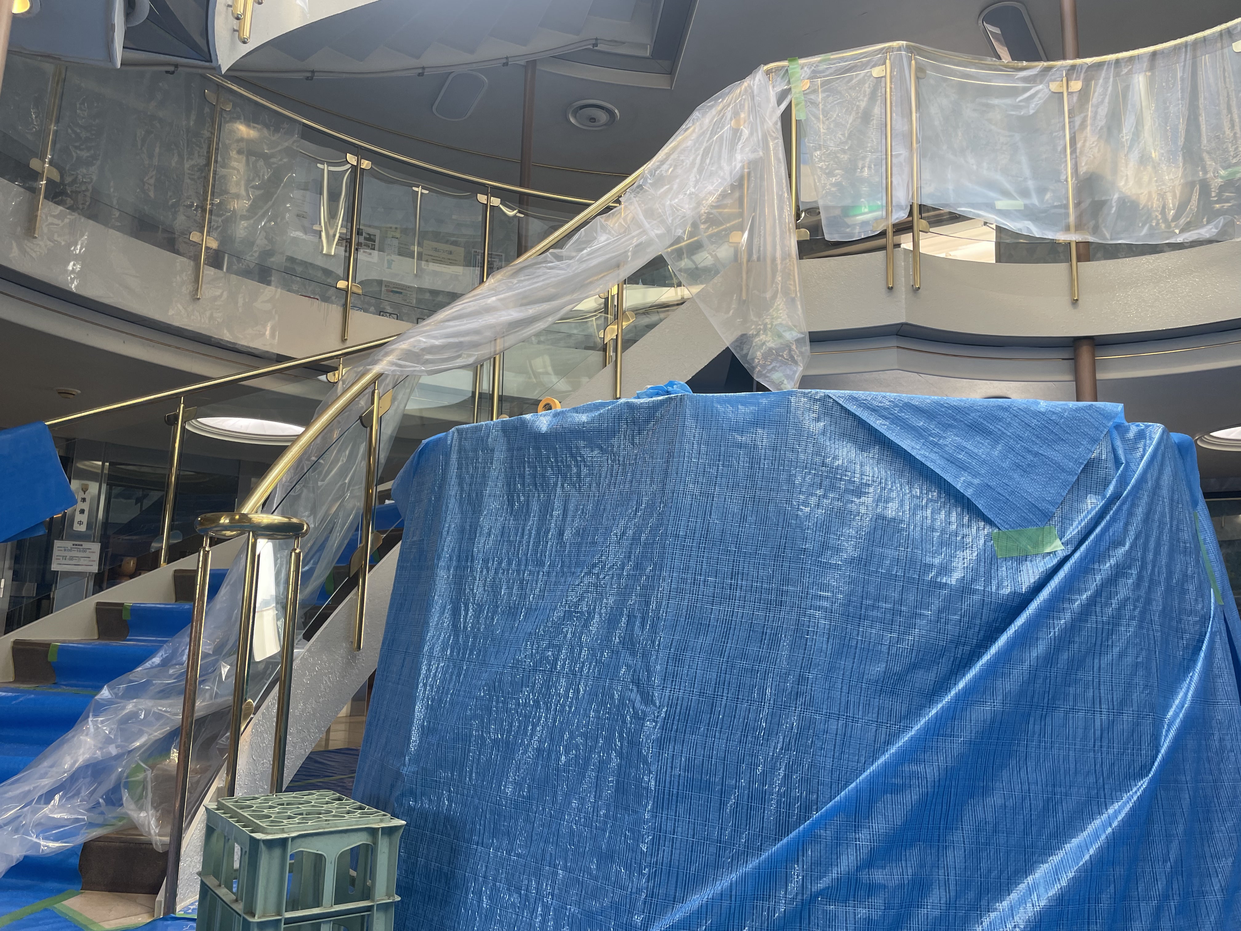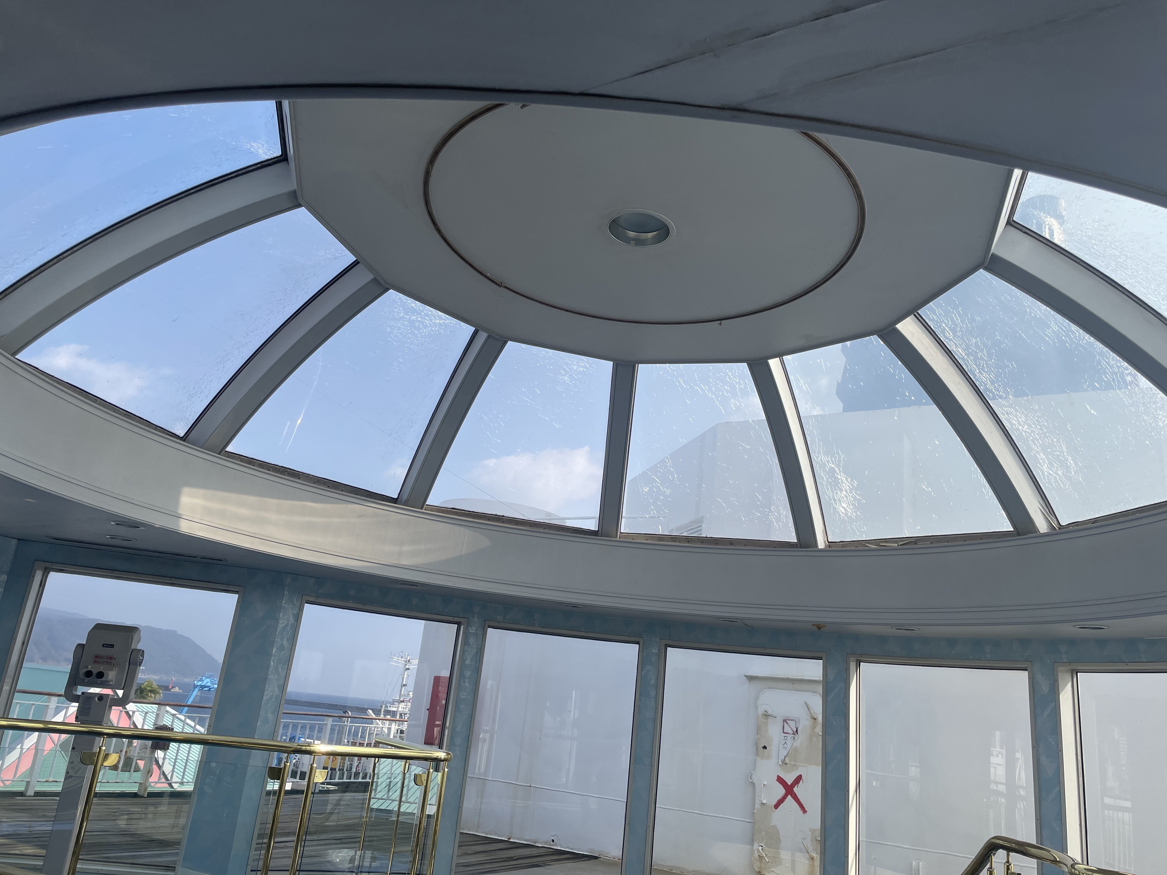 ところどころ船内は作業中のため、中央の螺旋階段を避けて。