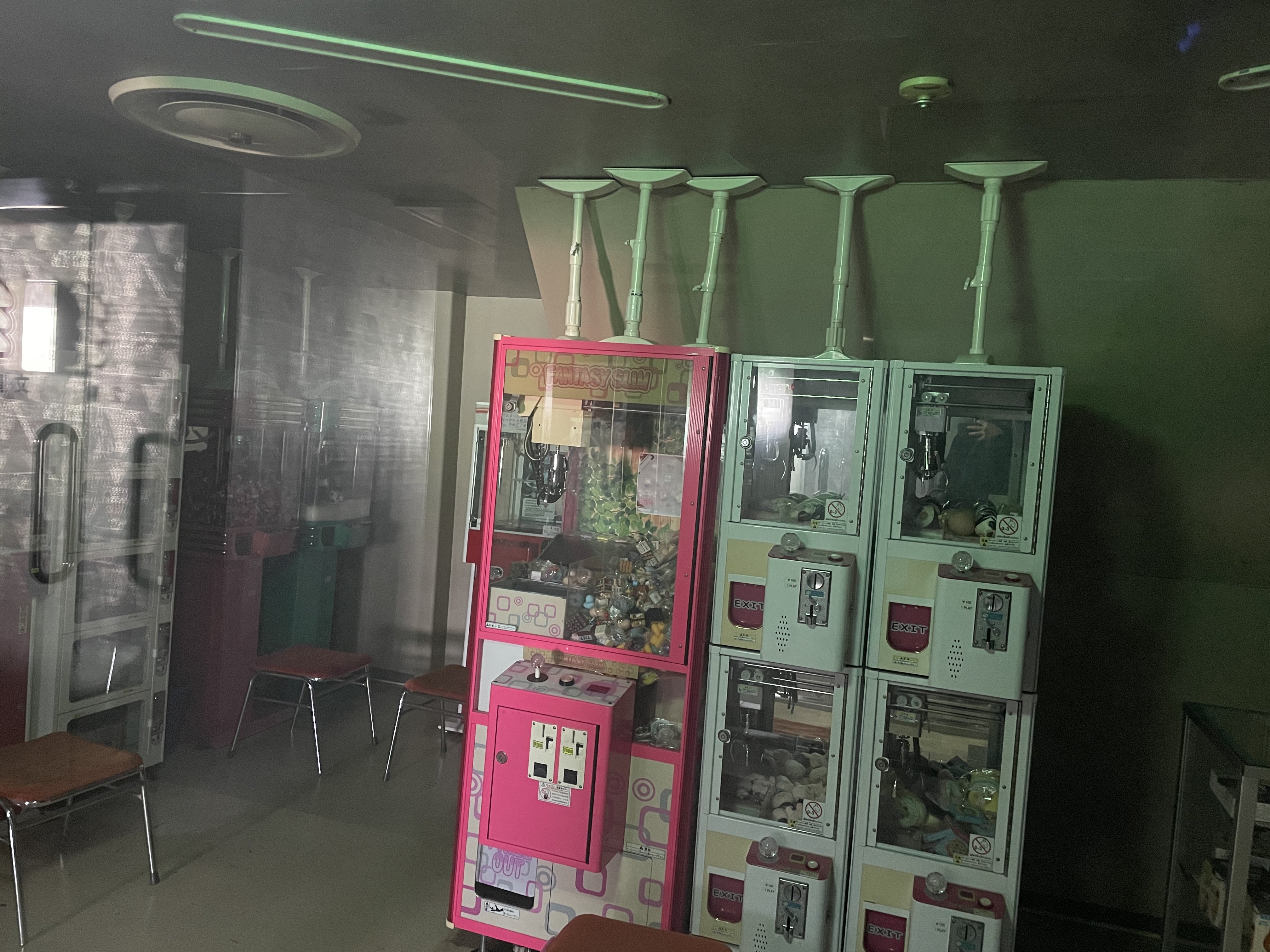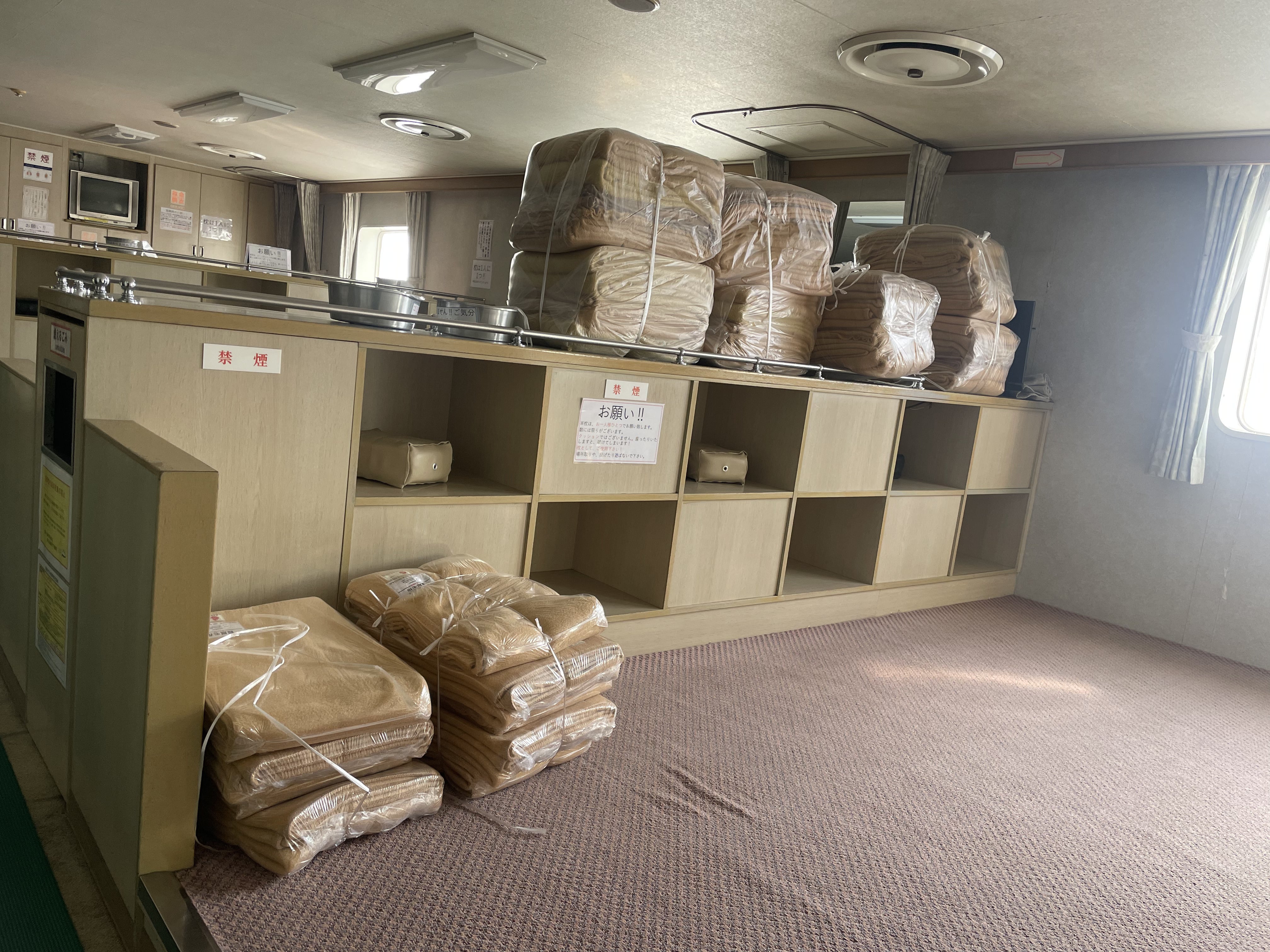 ゲーム筐体に突っ張り棒。船でしか見ない光景な気がします。