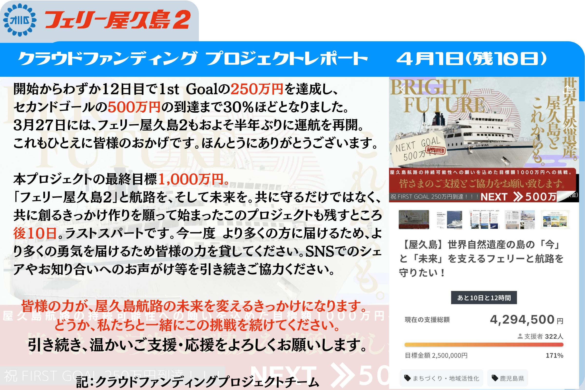 ぜひ、今一度 プロジェクトページへの応援をお願い致します。