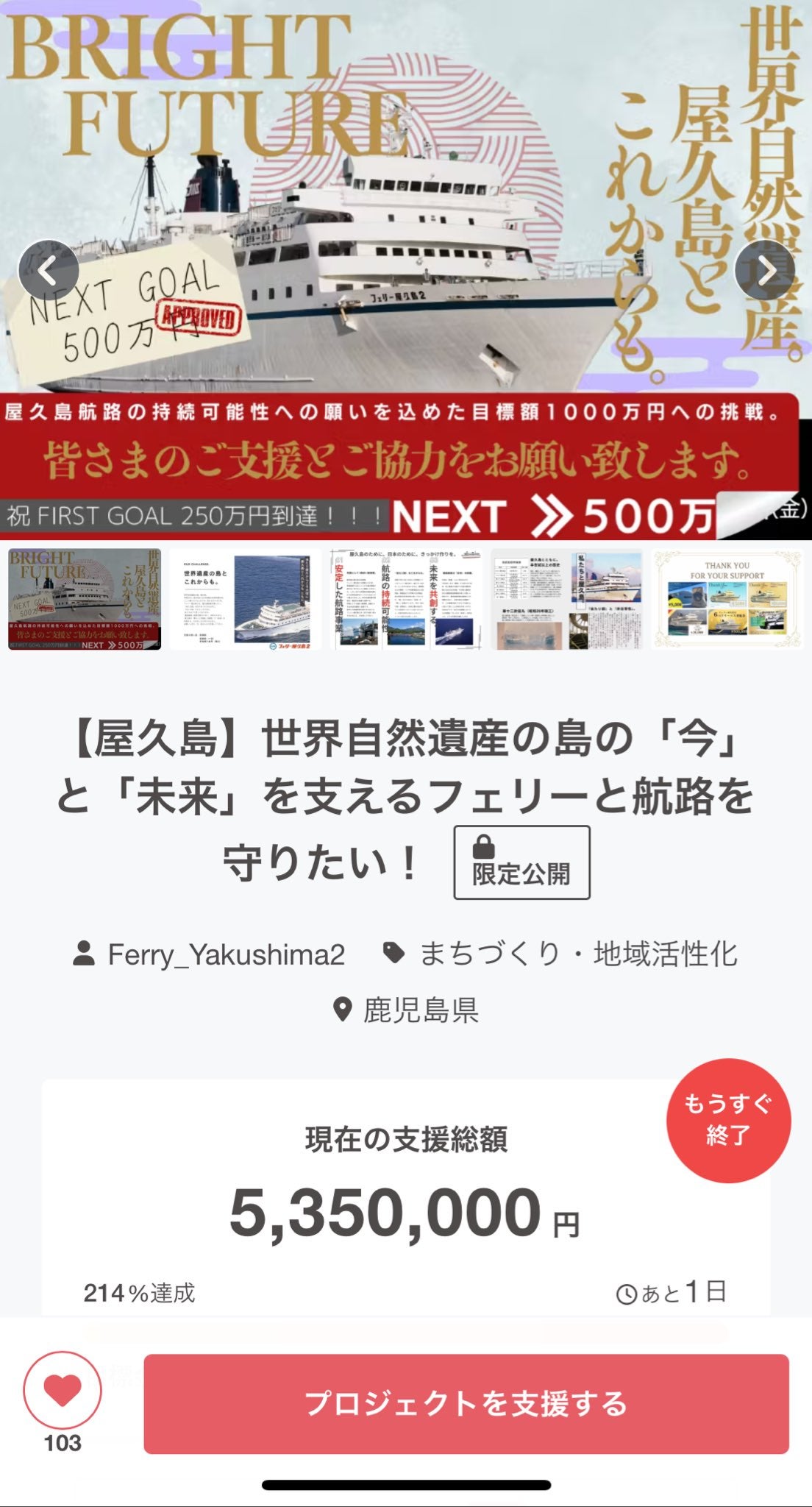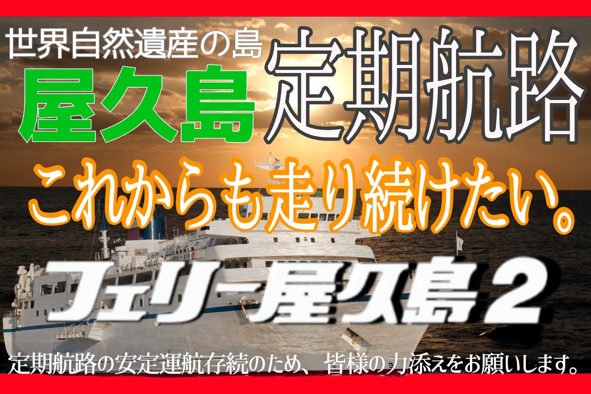 また、#フェリー屋久島2 のハッシュタグをつけて、応援の声を発信していただけると大変励みになります!