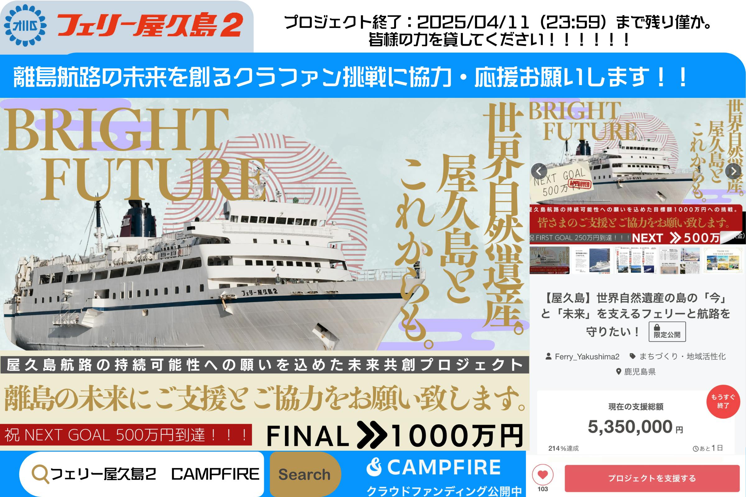 「フェリー屋久島2」や「全国の離島航路」を未来へつなぐため、ぜひお力をお貸しください。