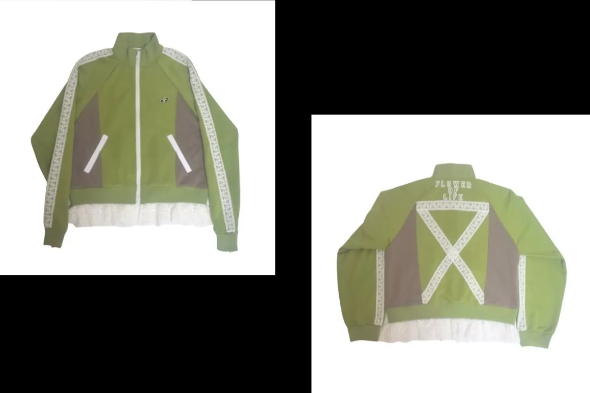 ↑ダンス熱が加速する昨今(Kリーグも開幕)にもリンクした「レコードワッペンジャージ」(レディース、メンズでデザインが異なる)。レディースは裾に花刺繍フリルが施されダンスするとフワッとたなびくのが魅力的。メンズはヨーロッパのアンダーグラウンドミュージックをイメージしたアシッドライクなテープが施されカルチュラルな仕様に。アクティブなカジュアルストリートスタイリングで着こなしたい。