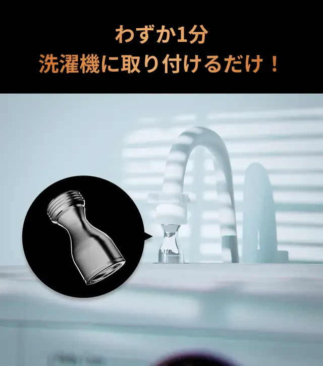 わずか1分で取り付け可能です。洗濯機のねじ山に直接回して設置するだけ。