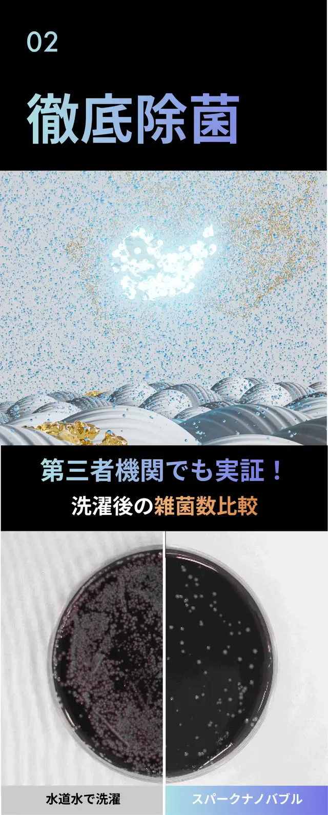 従来の洗濯では落としにくい汚れも簡単に落とせるため、衣類がより清潔になります。
