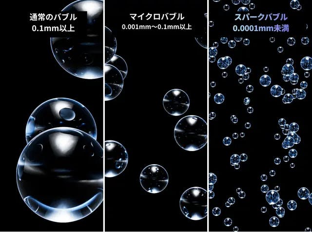 通常のバブルよりもさらに小さい「スパークナノバブル」。
