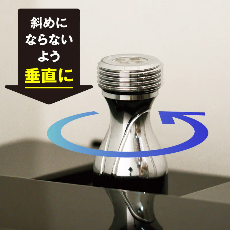 洗濯機の給水口の樹脂ネジの上に本品を置き、時計回りとは反対方向に2~3回軽く回します。