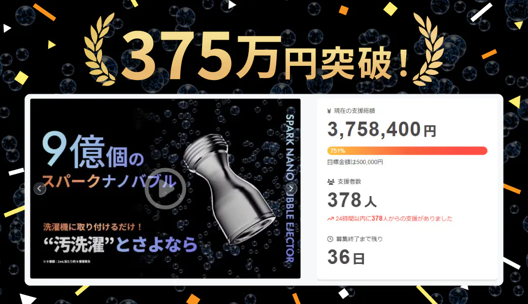 「スパークナノバブル」のCAMPFIRE担当者です。