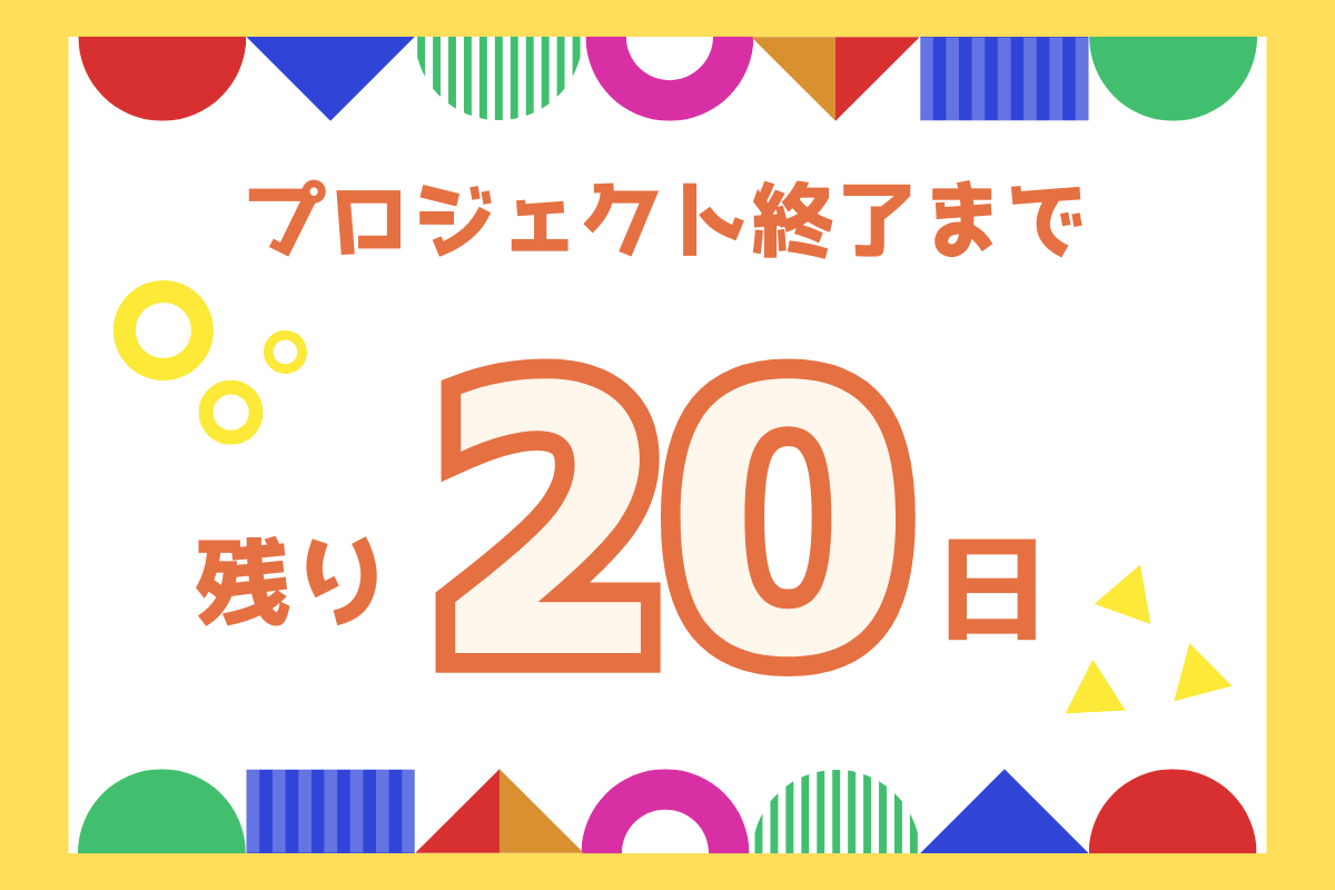 本日でプロジェクト終了まで残り20日となりました。2025年1月10日時点で38人の方々にご支援いただいており、70人の方にお気に入り登録していただいています。ご支援いただいた皆様のお力添えにより、日々少しづつご支援の輪が広がっているのを感じています。本当にありがとうございます。