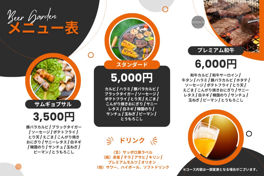 通常より約1,000円お安くさせていただき、料金お手軽なサムギョプサルコースから、少し贅沢なプレミアム和牛コースまで幅広くご用意いたしました。