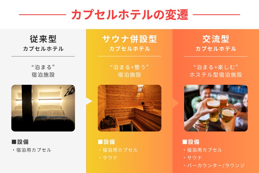 「カプセルホテル」と「ホステル」を融合させた「カプセルホステル」形式