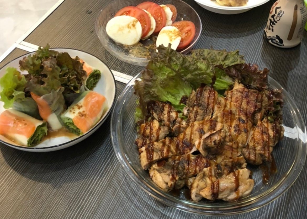 お料理について、あまり凝ったものはお出しできませんが低温調理の鶏ハム、サラダラップ等みーちゃんが軽食を考えてくれています。
