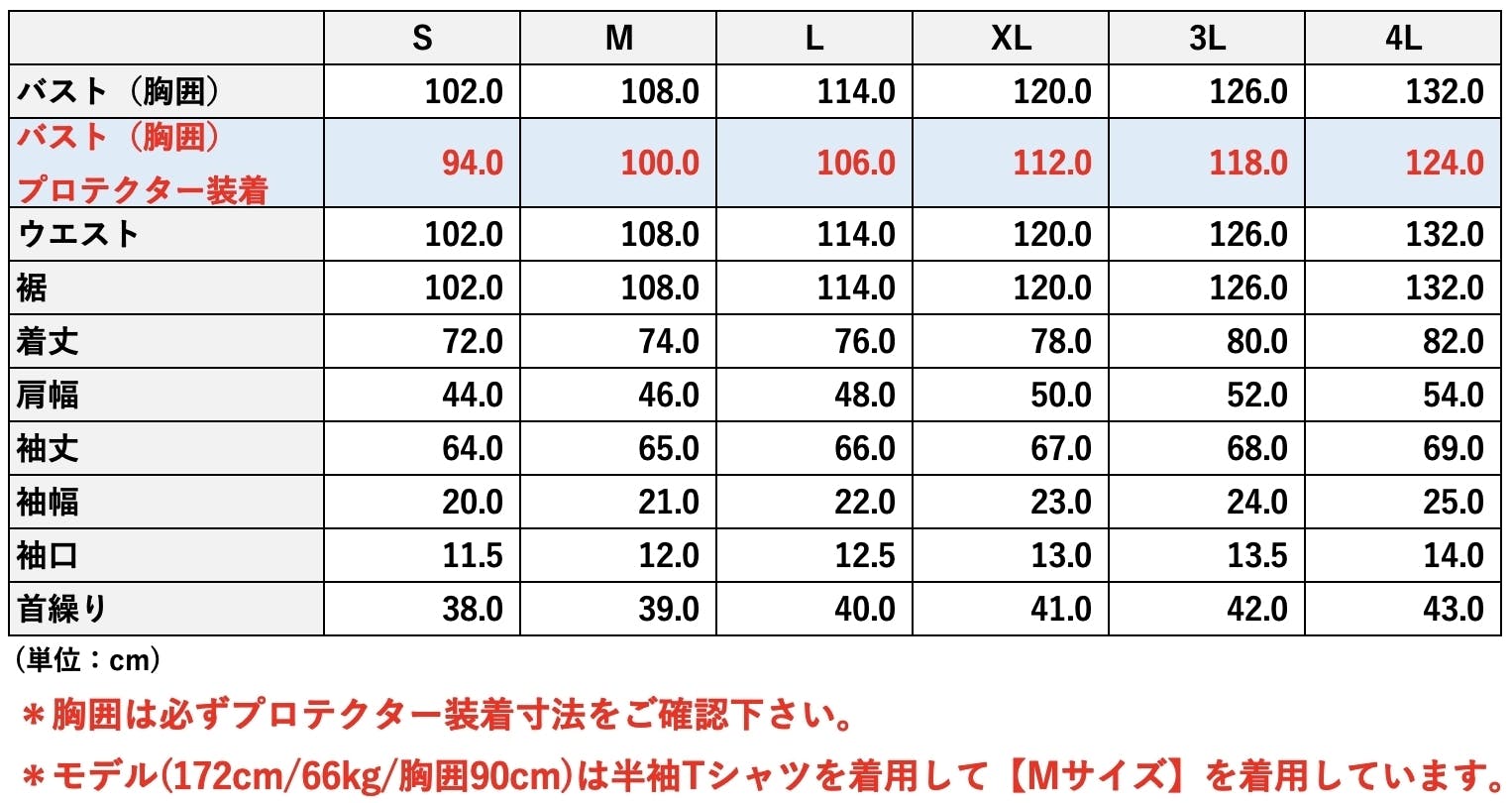 24年版と胸囲・ウエスト・裾幅は同寸法になります。胸囲(プロテクター装着)寸法を必ずご確認の上、ご自身のお身体に適しているかご判断下さいませ。上述の通りサイズ変更交換不可になります。
