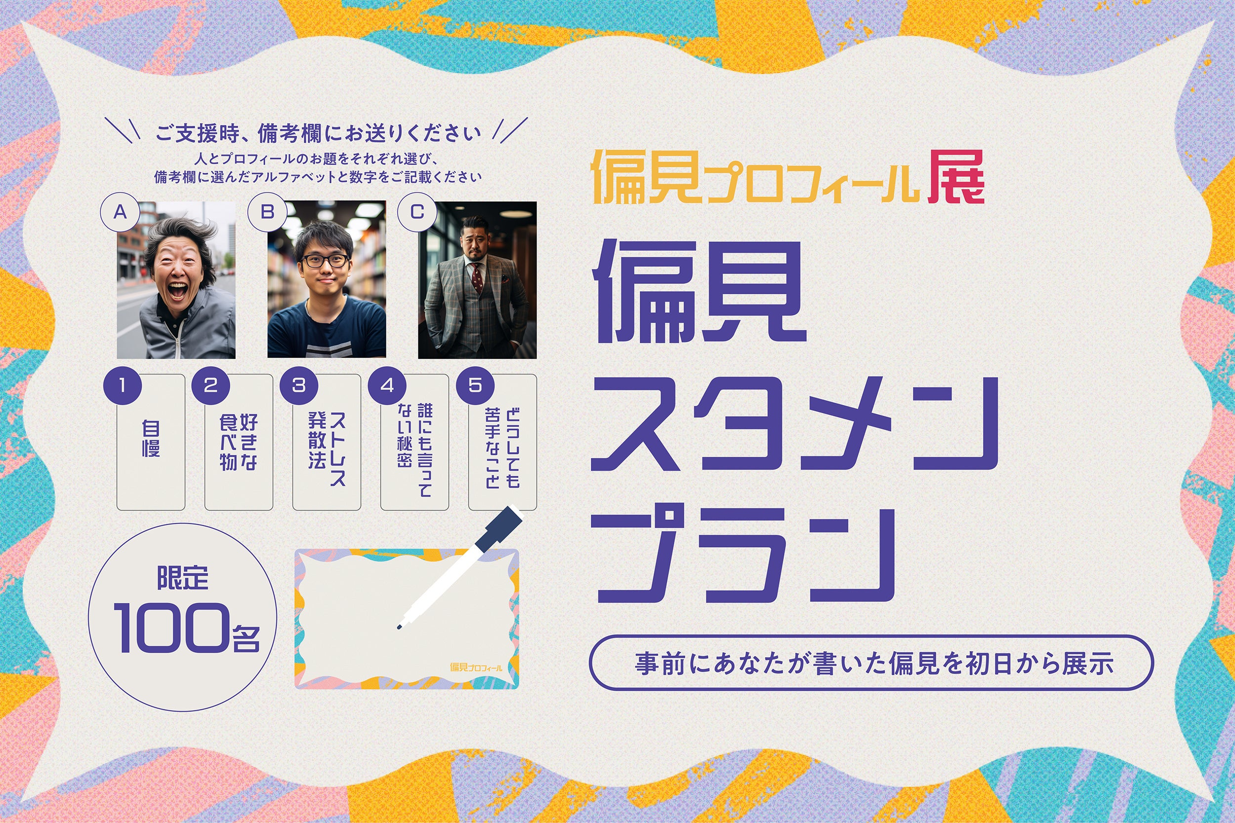 そのほか、会場でしか手に入らない限定人物カード、限定ステッカーなどグッズ販売も計画中!さらに無料配布のパンフレット内で、『偏見プロフィール』の遺伝子を受け継ぐ新作ボードゲームの情報も解禁!…などなど見どころ盛り沢山です!