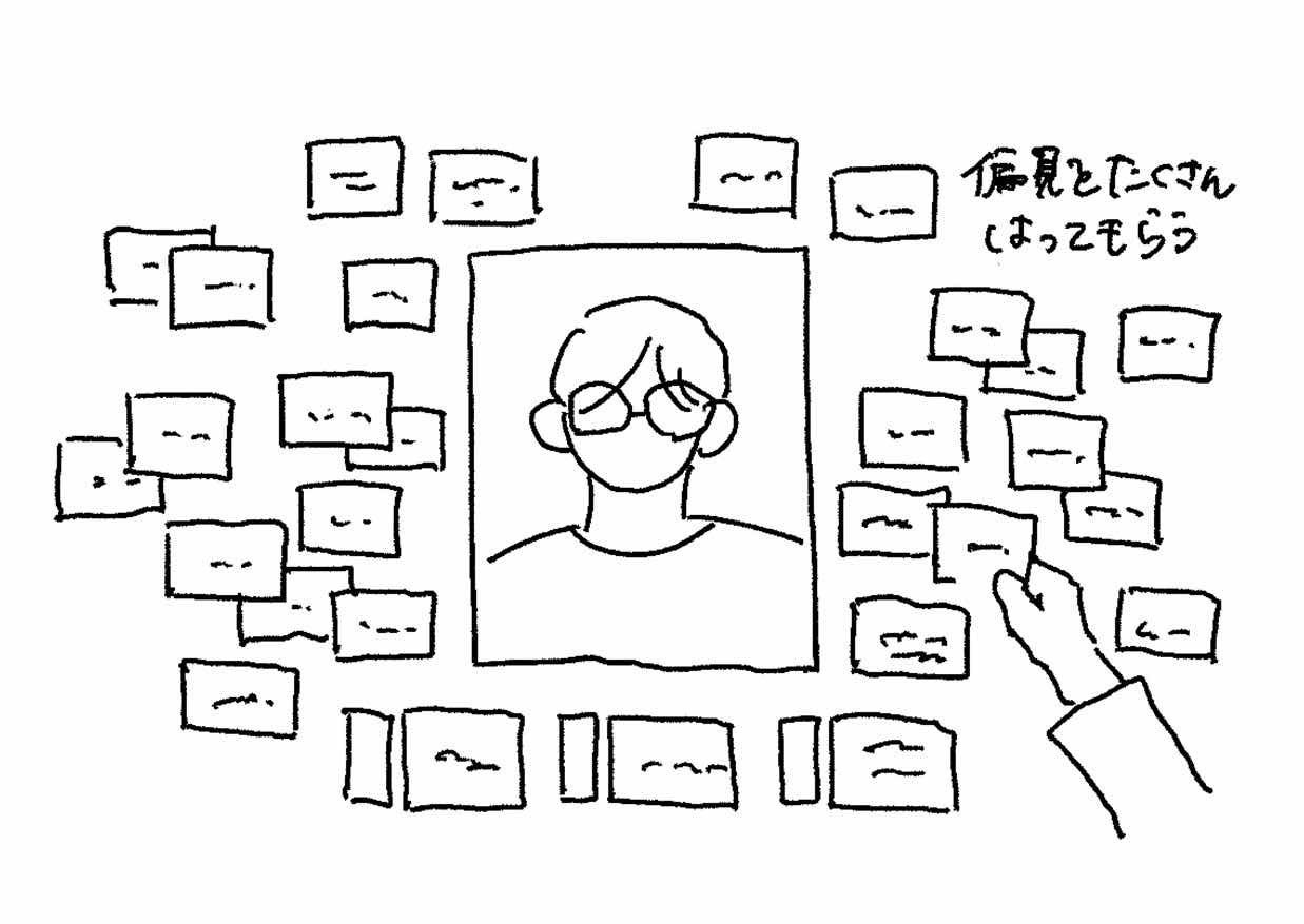 お送りいただいた偏見は、弊団体でふせんに記入します。